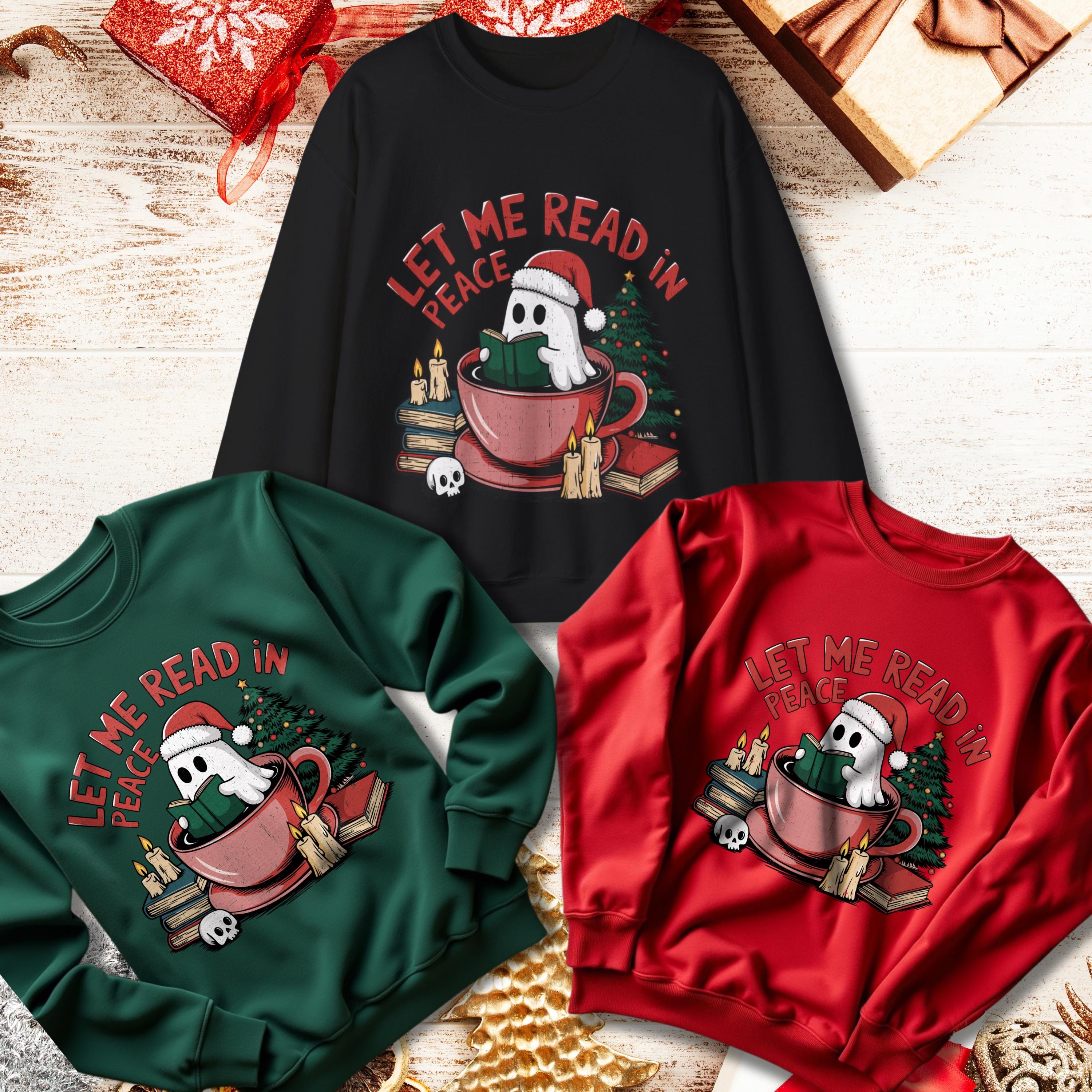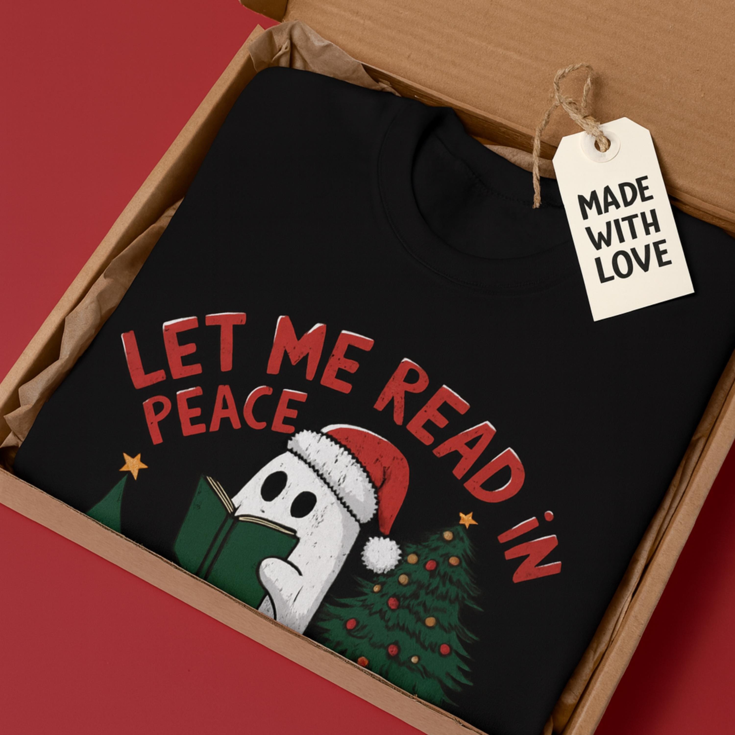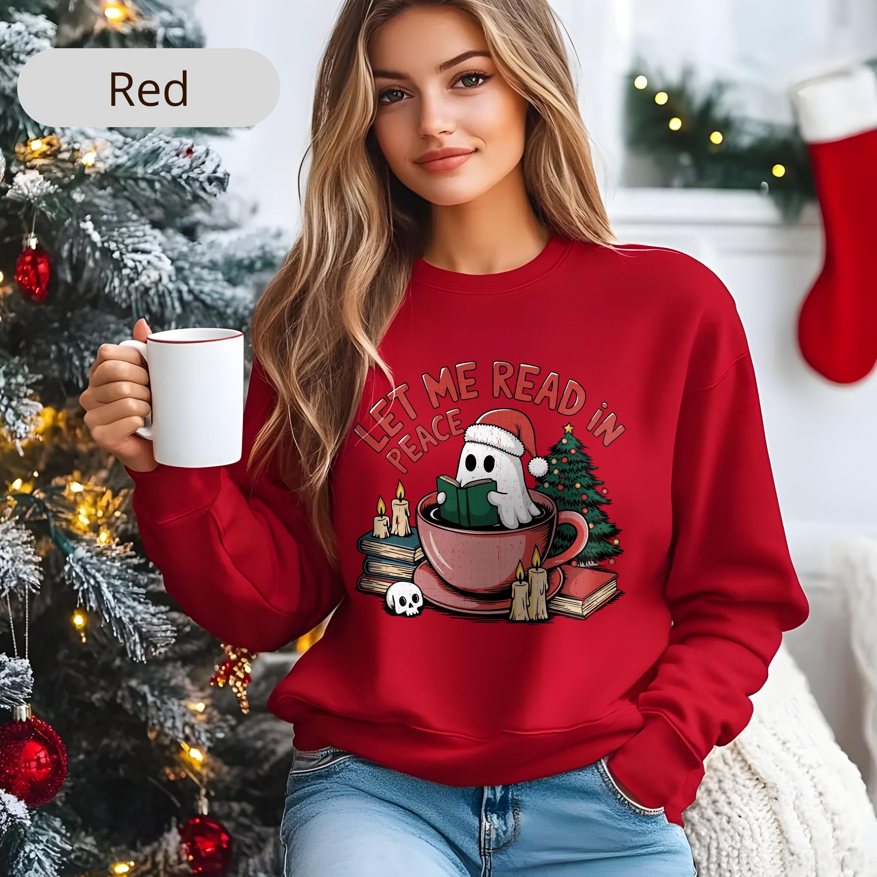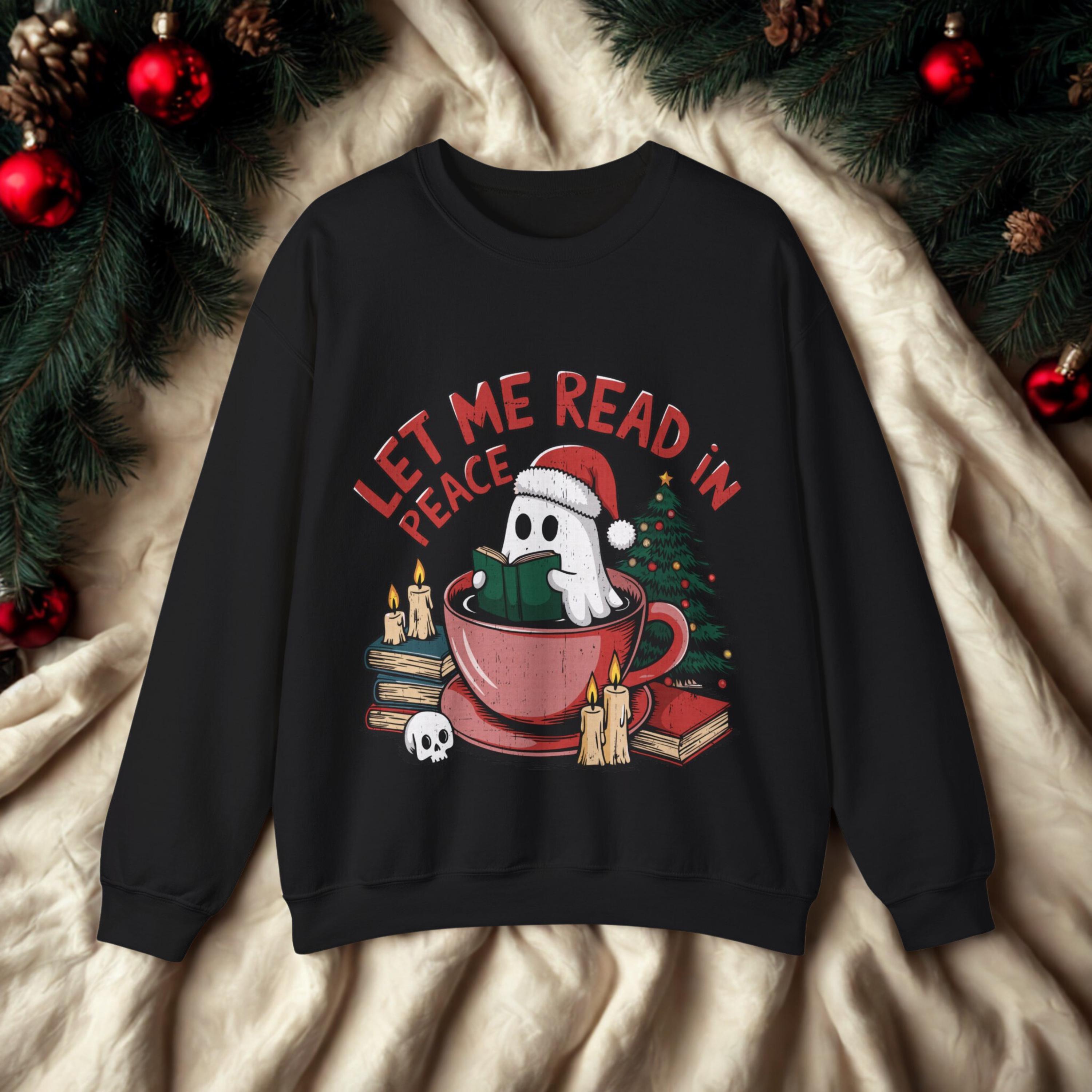 Let Me Read in Peace Christmas Ghost Hoodie Sweatshirt Tee – Cozy Book Lover Gift, Funny Reading Shirt, Holiday Bookish Apparel