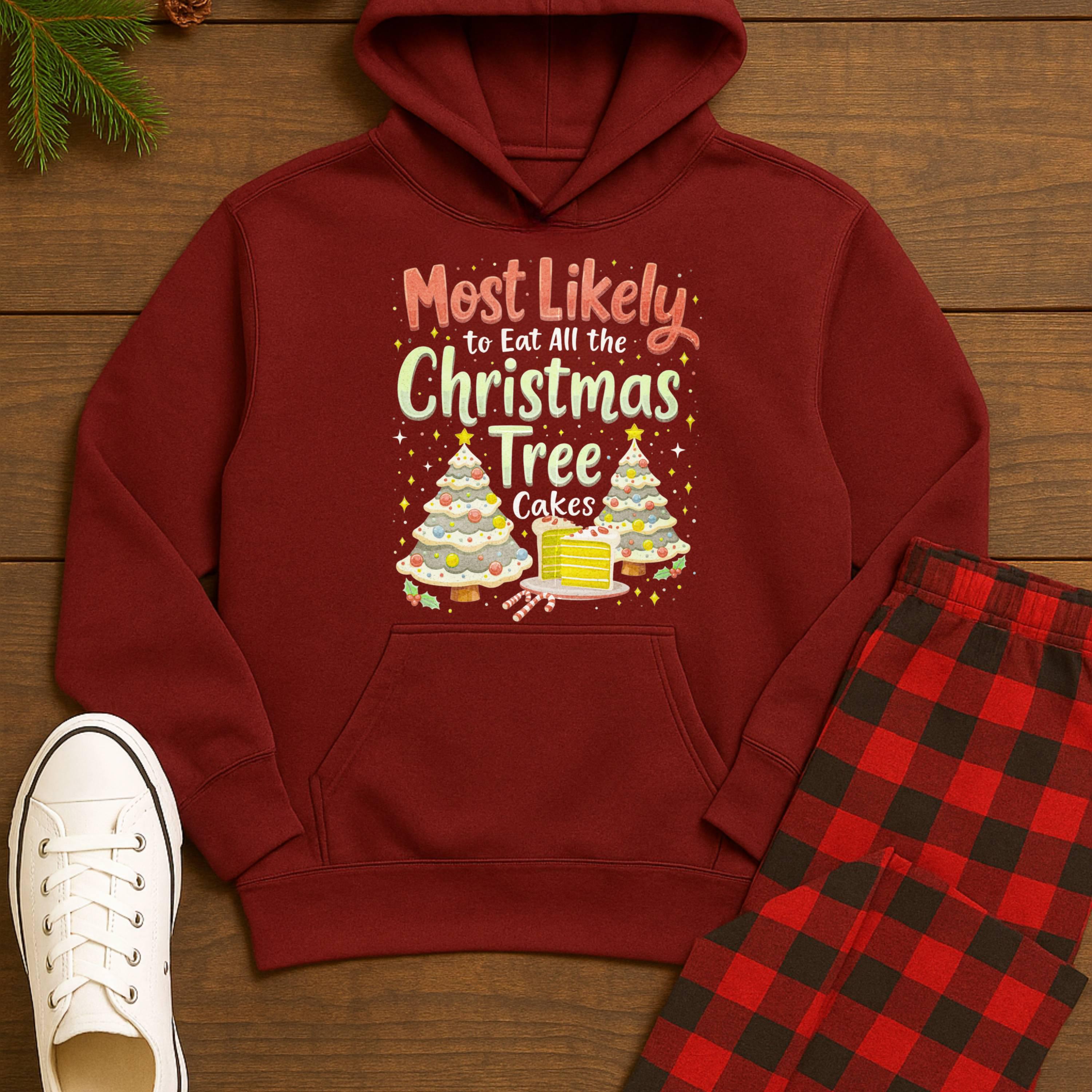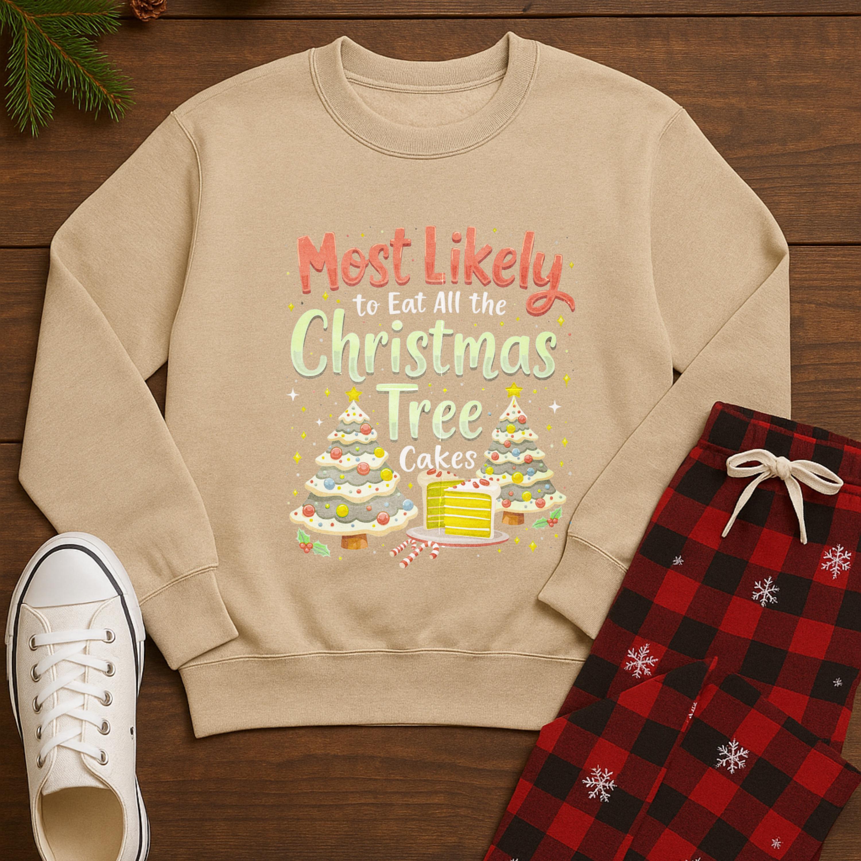 Funny Holiday Shirt - Most Likely To Eat All The Christmas Tree Cake -- Xmas Sweatshirt Hoodie Long Sleeve - Cute Family Outfit