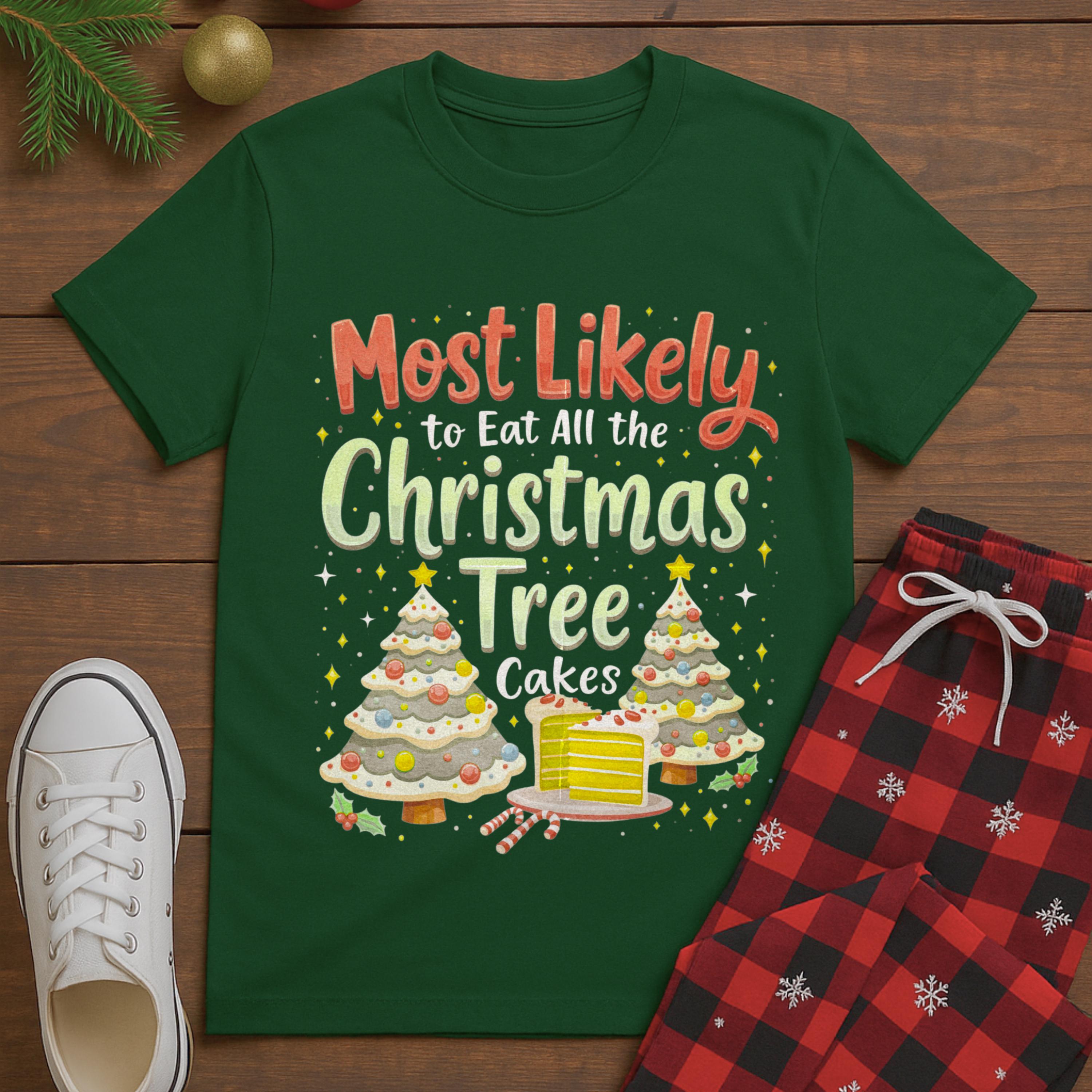 Get ready to spread holiday cheer (and cake crumbs!) with this hilarious Most Likely To Eat All The Christmas Tree Cake design. Perfect for those who can’t resist festive treats and love to bring humor to every celebration.