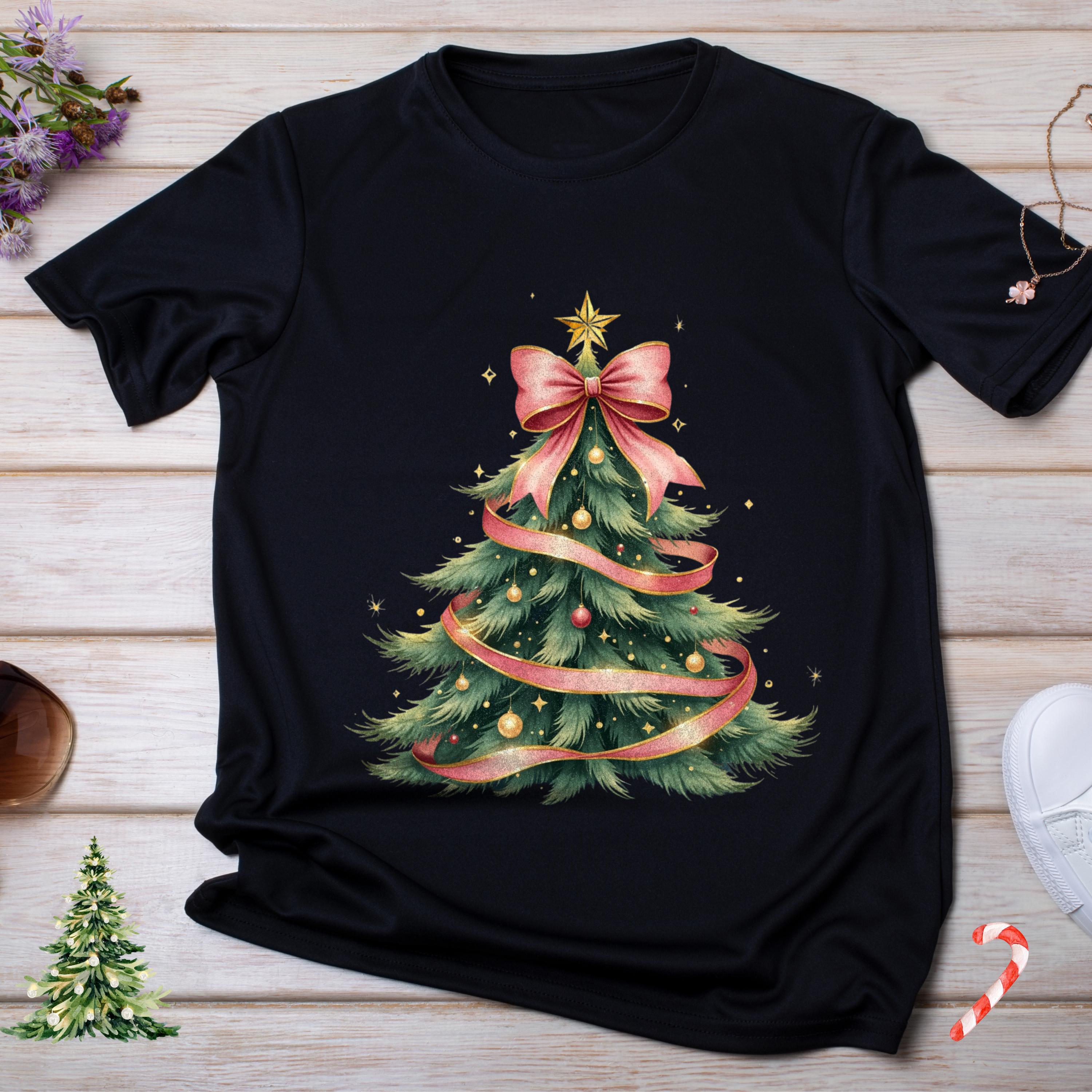 Unique Design: Featuring a charming Christmas tree adorned with delightful bows, this shirt captures the joy and warmth of the holiday season. Perfect for family gatherings, holiday photos, or casual wear!