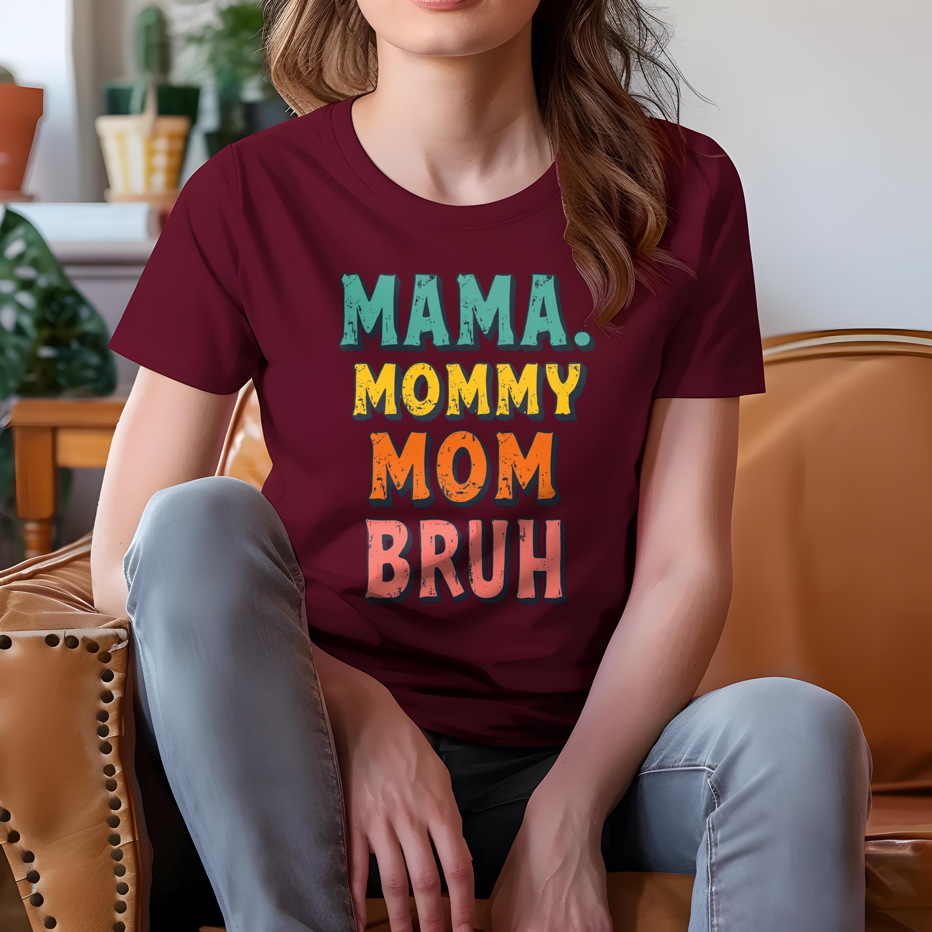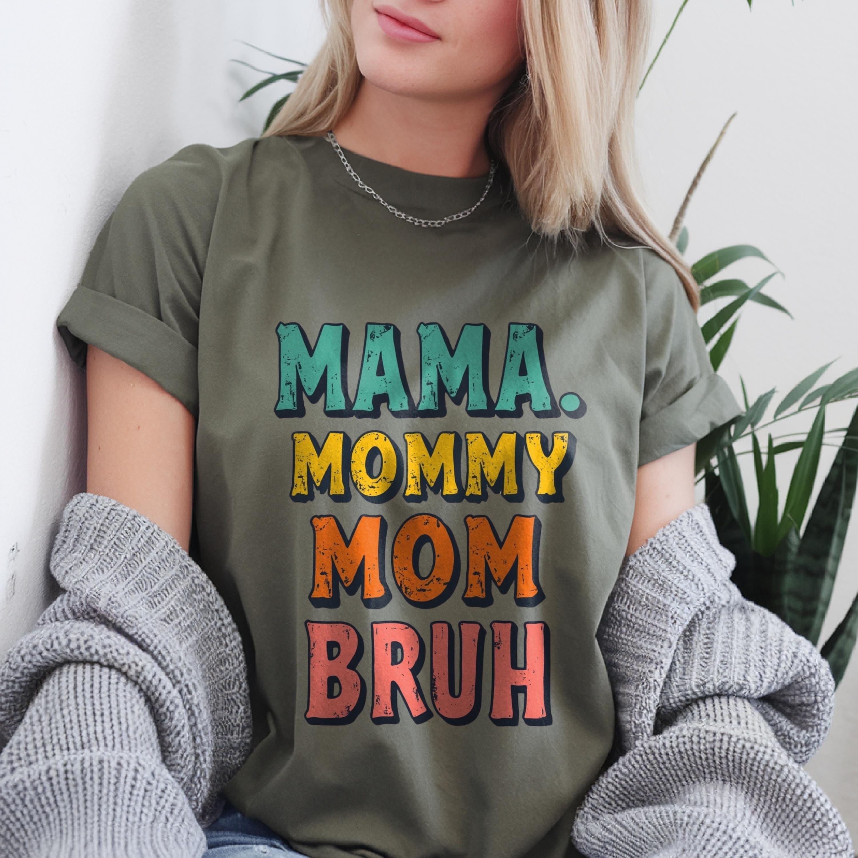 Celebrate motherhood with humor and style in this “Mama. Mommy. Mom. Bruh.” retro t-shirt – the perfect gift for every tired, loving, and hilarious mom out there. Featuring bold vintage-style lettering in a colorful distressed design, this tee captures the evolution of mom life in the funniest way possible.