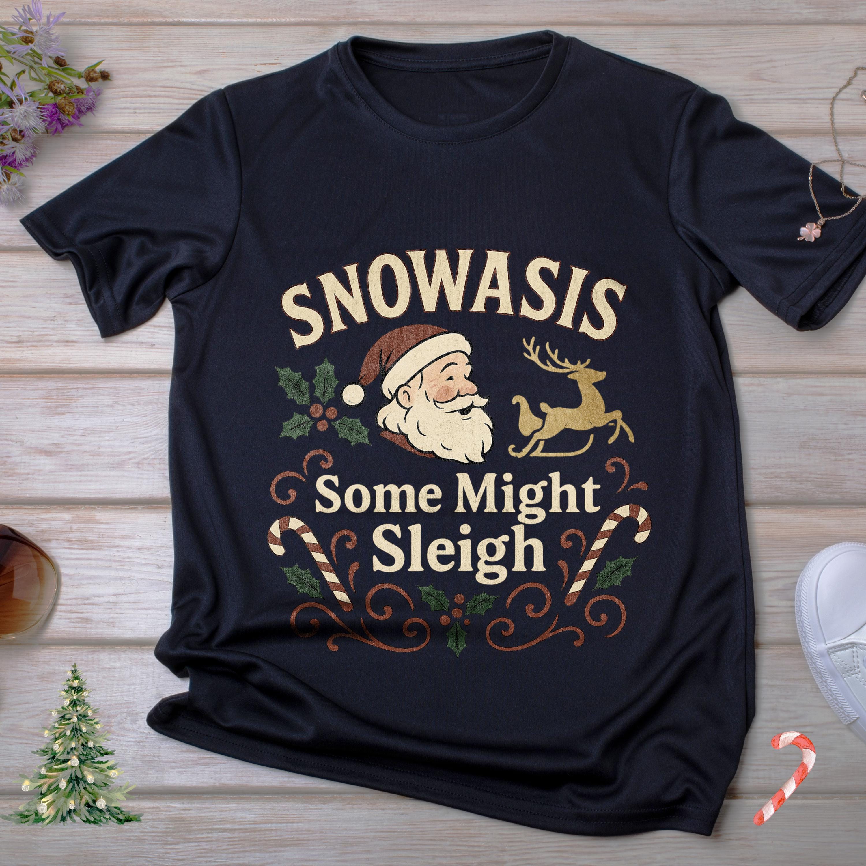 funny christmas shirt, santa claus pun tee, some might sleigh, christmas joke shirt, retro xmas sweatshirt, snowasis christmas design, holiday humor top, cute santa shirt, christmas pun tee, reindeer santa shirt, festive holiday apparel, ugly sweater party tee, santa sleigh humor