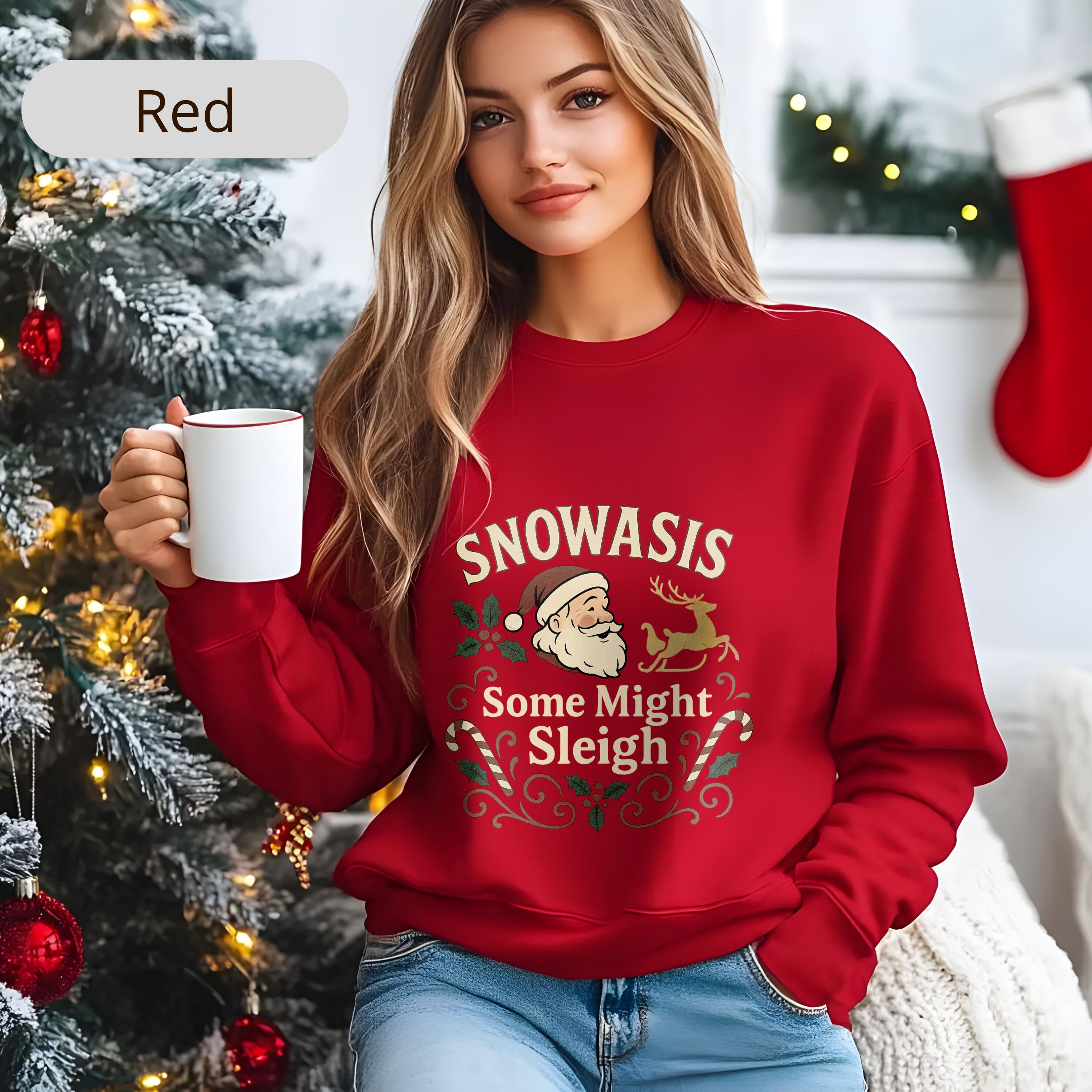 Funny Christmas Shirt – Some Might Sleigh – Santa Claus Pun Tee – Retro Holiday Humor – Cute Xmas Sweatshirt – Snowasis Gift Idea