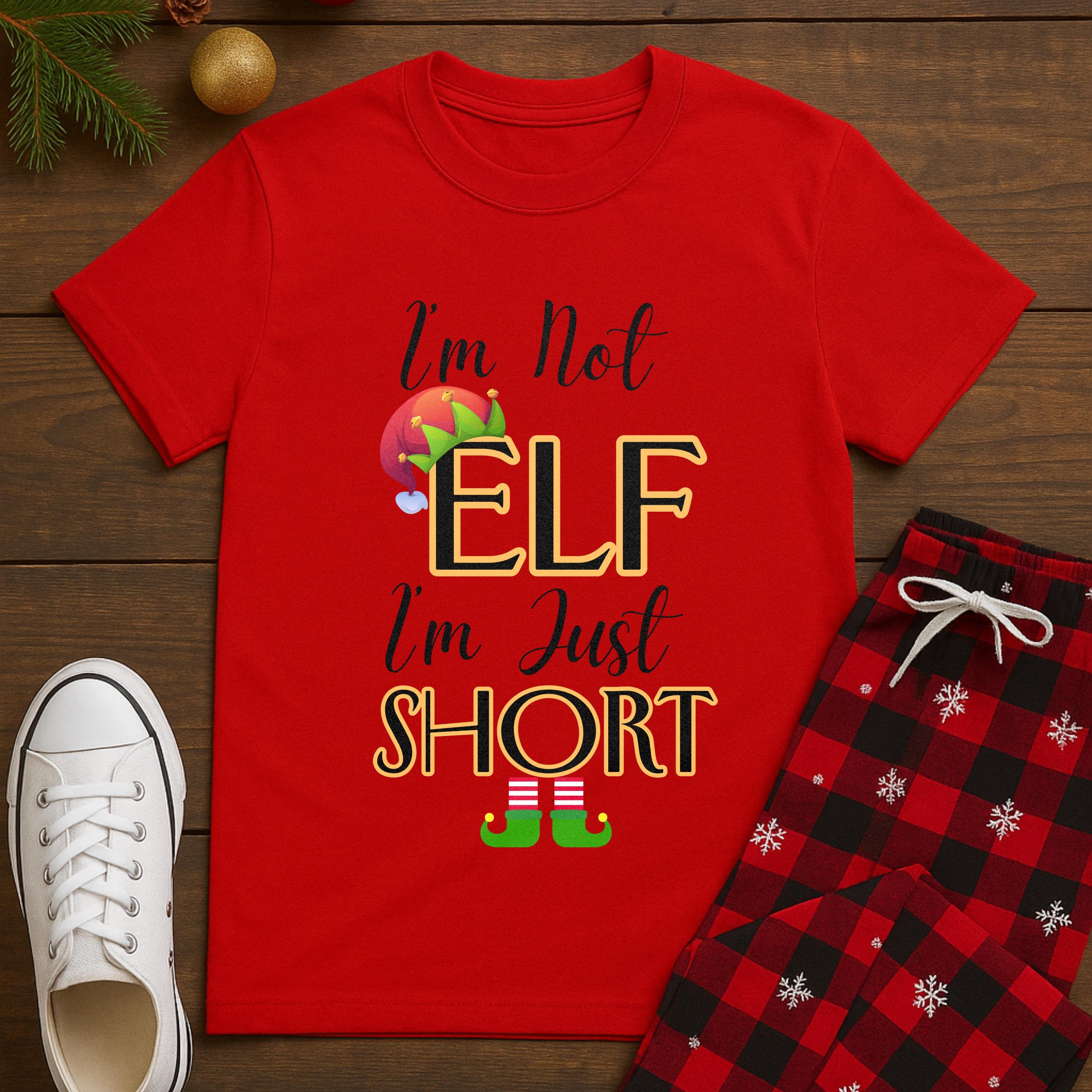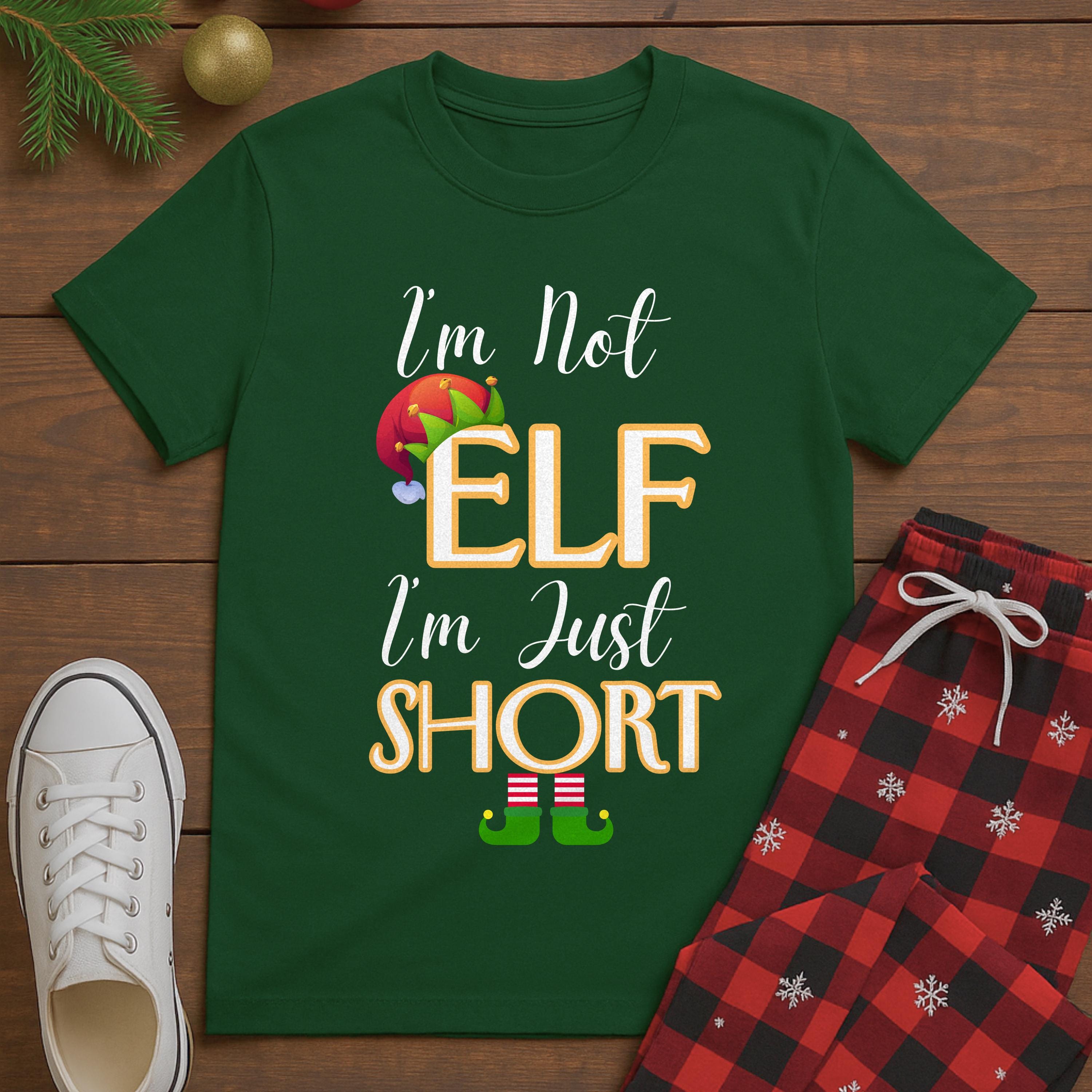 Funny Elf Christmas Shirt – Humor Holiday Tee, I'm Not An Elf I'm Just Short, Cute Xmas Sweatshit & tee
