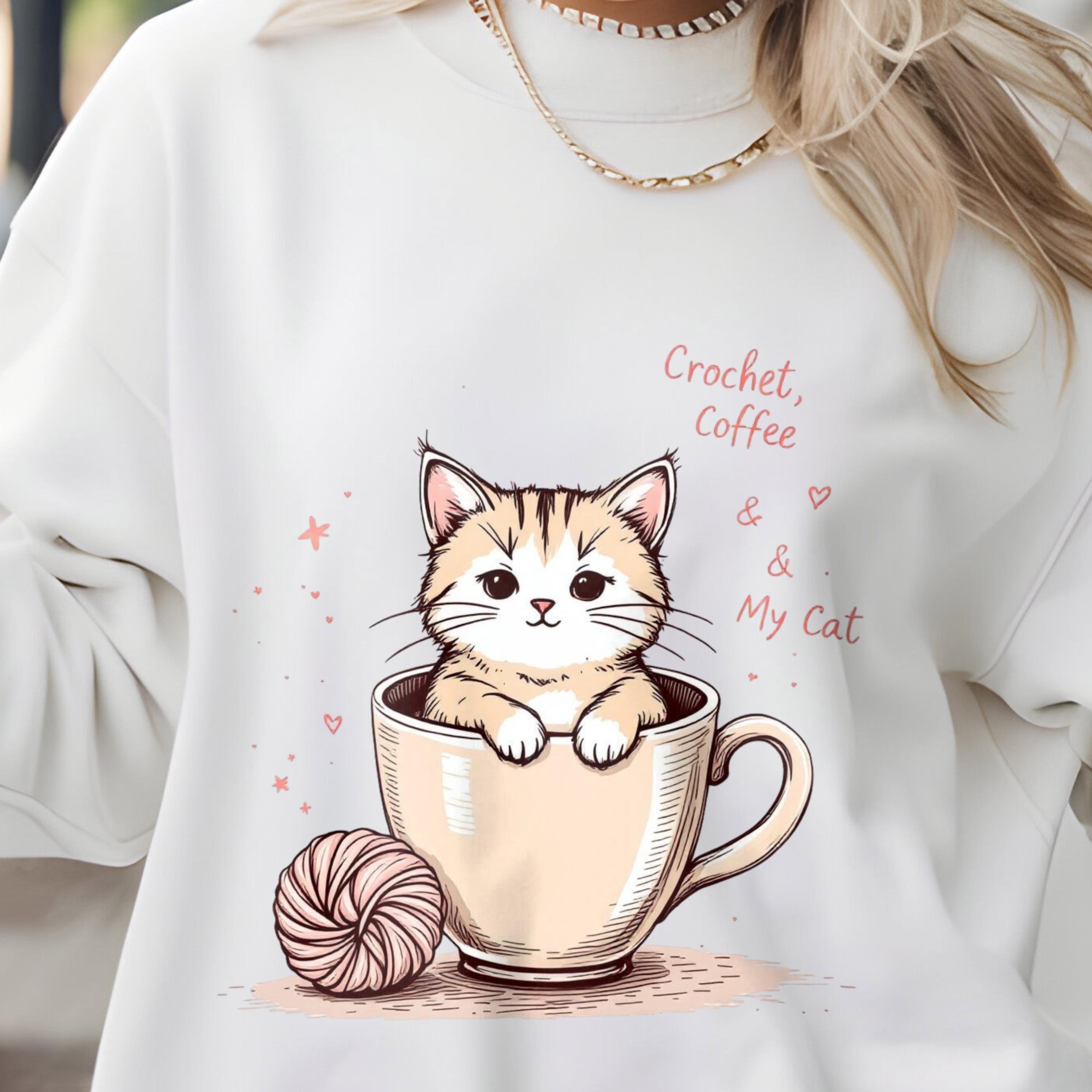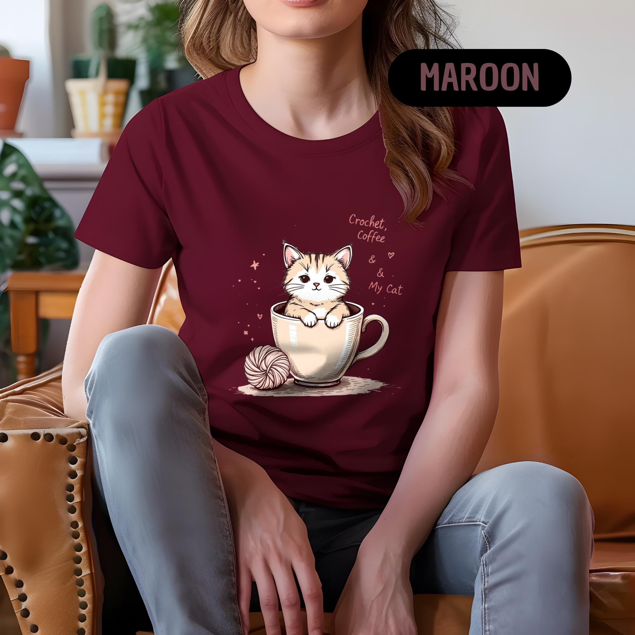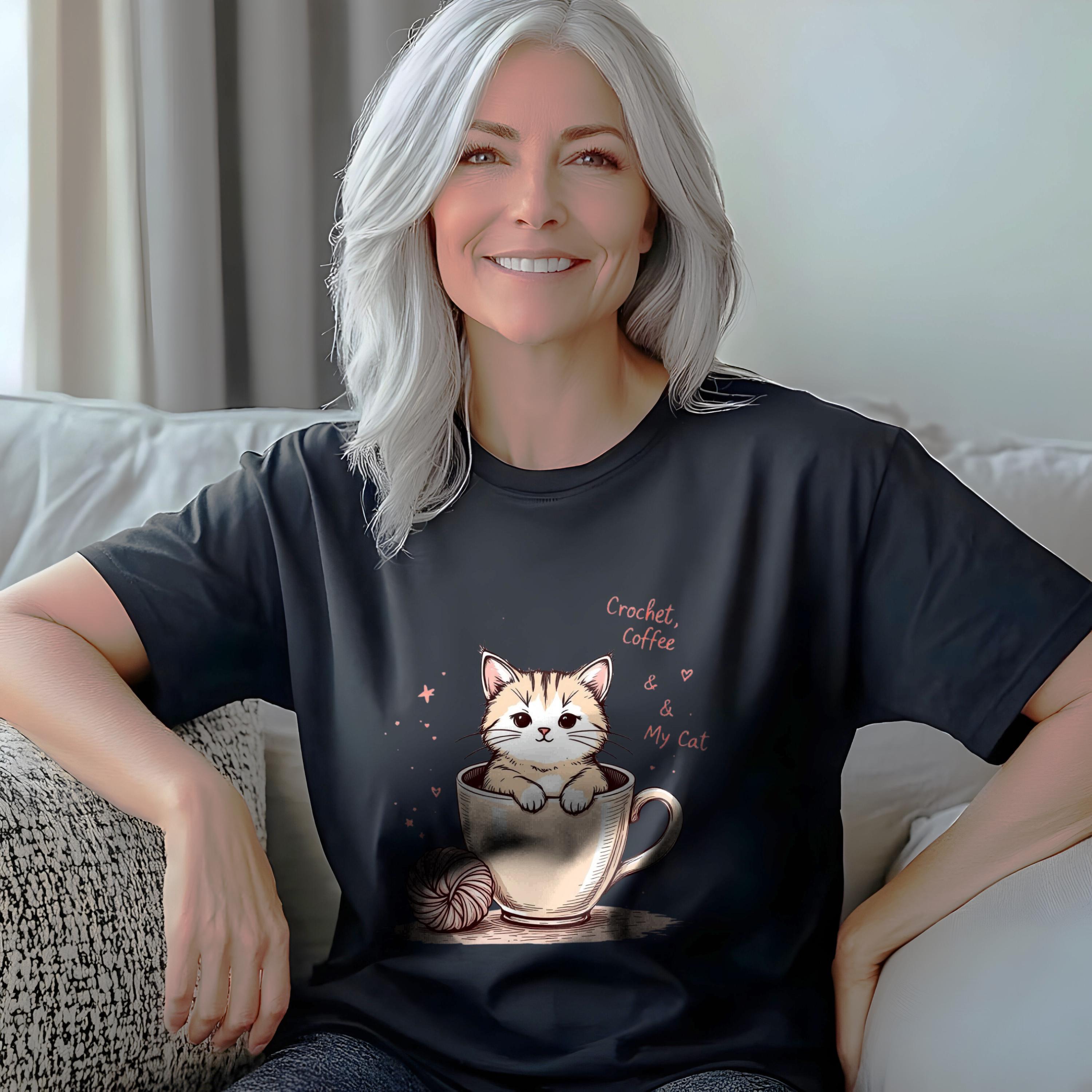 cat lover shirt, crochet hobby tee, yarn mom gift, cozy coffee graphic tee, maker life, crochet yarn, coffee craft, cat owner tee, yarn artist, cozy crafter, funny saying shirt, gift for her, gift for him