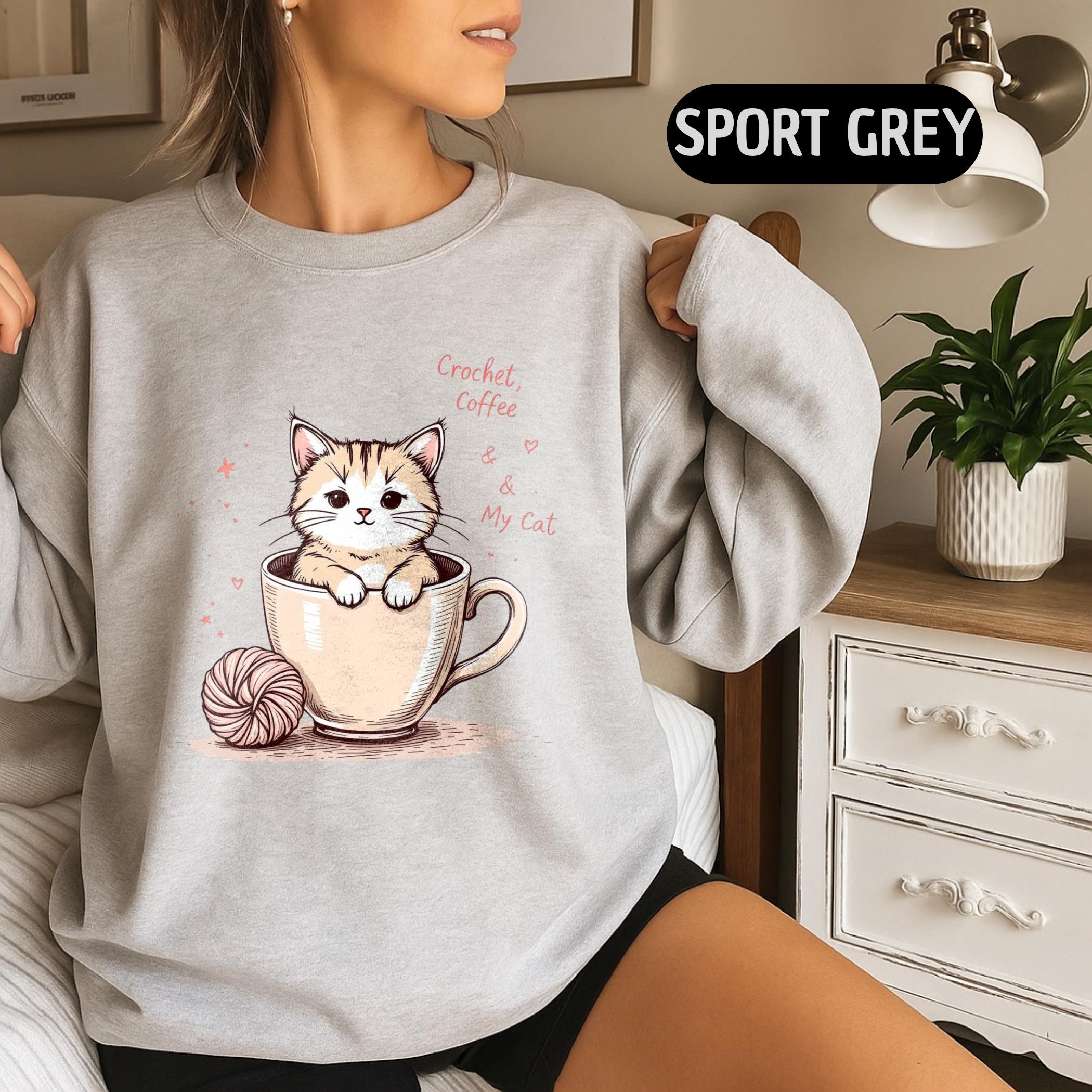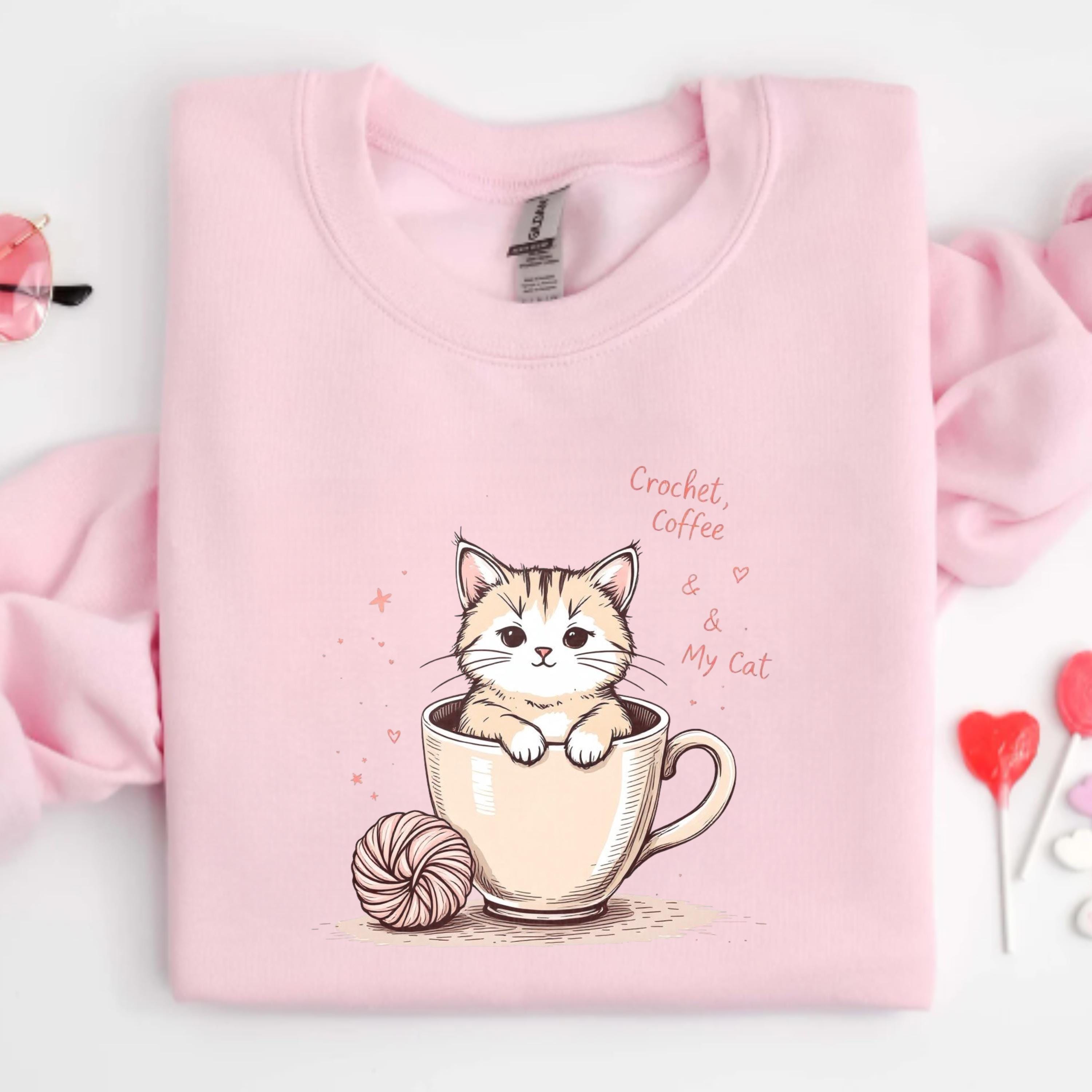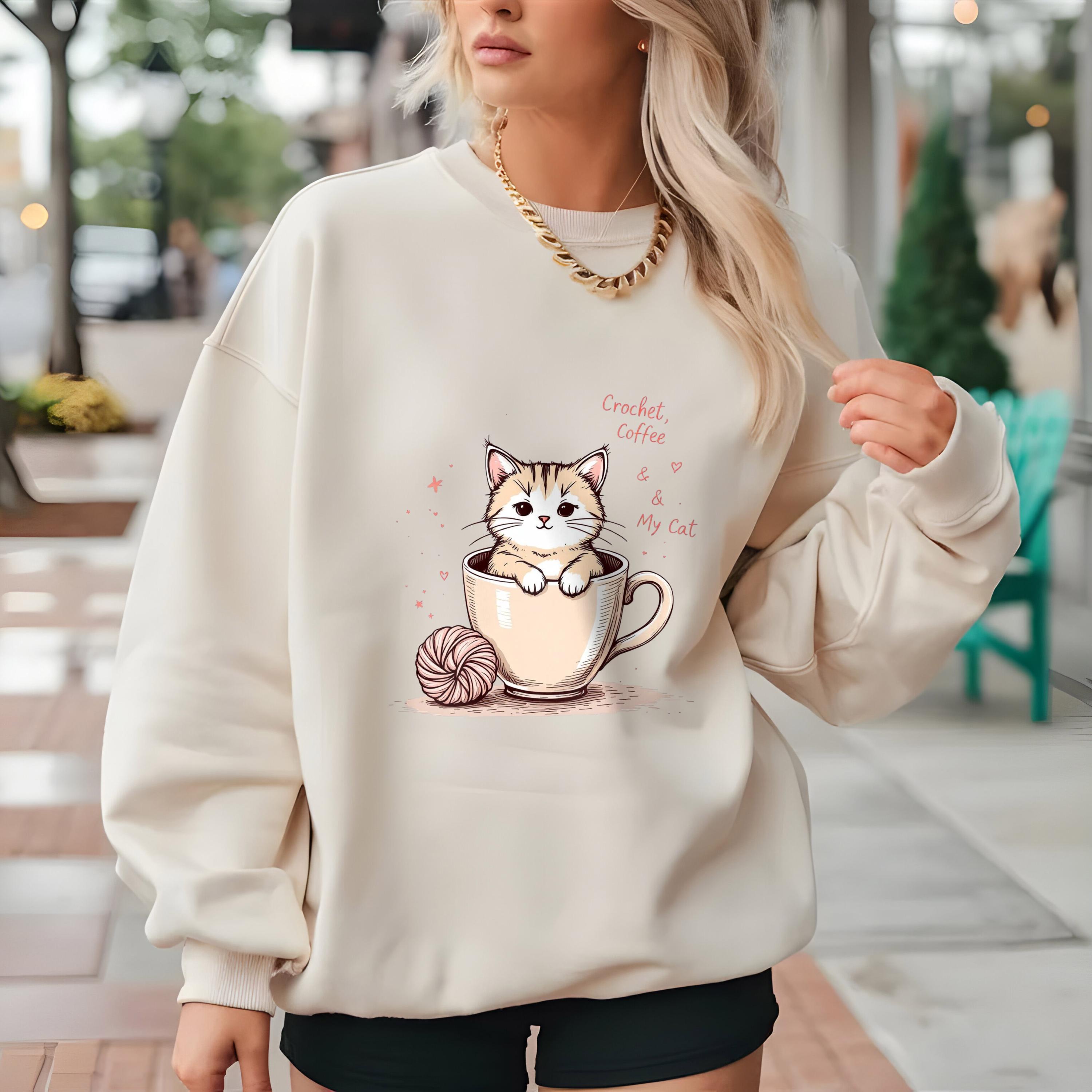 cat lover shirt, crochet hobby tee, yarn mom gift, cozy coffee graphic tee, maker life, crochet yarn, coffee craft, cat owner tee, yarn artist, cozy crafter, funny saying shirt, gift for her, gift for him