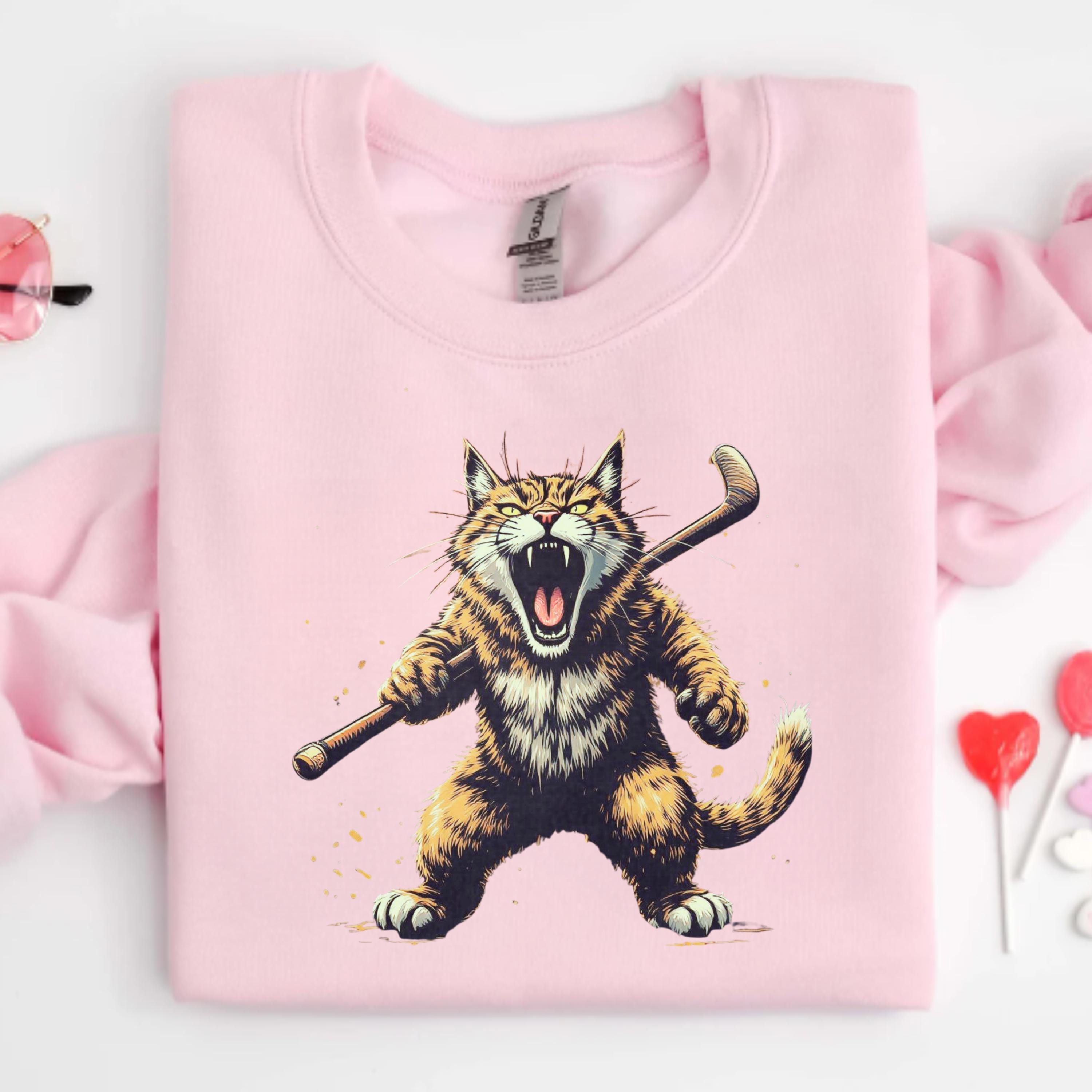 Funny Cat Hockey Shirt Cat Playing Ice Hockey Sweatshirt, Cute Kitten Sports Hoodie Gift, Ice Rink Animal Graphic