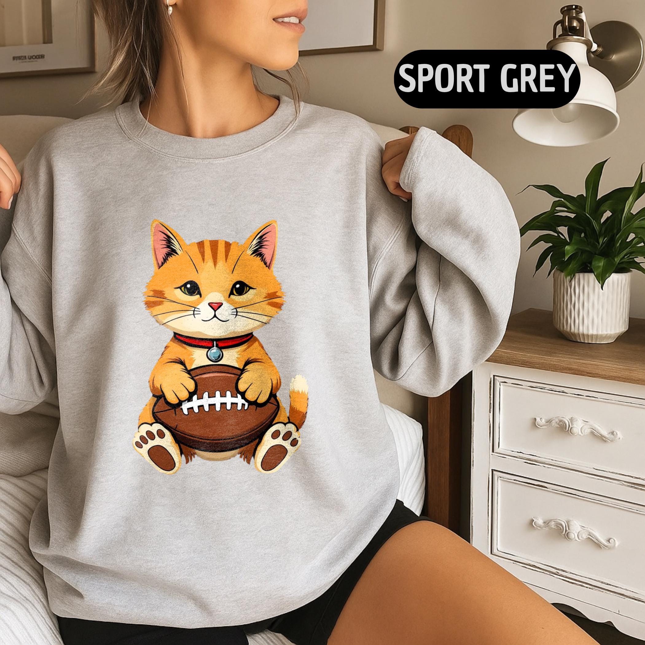 funny cat football shirt, cat lover gift, football cat sweatshirt, cat hoodie for mom, cat hoodie for dad, holiday cat gift, cute cat football tee, pet lover apparel, football lover gift, cat mom sweatshirt, cat dad hoodie, funny sports cat shirt, christmas cat gift
