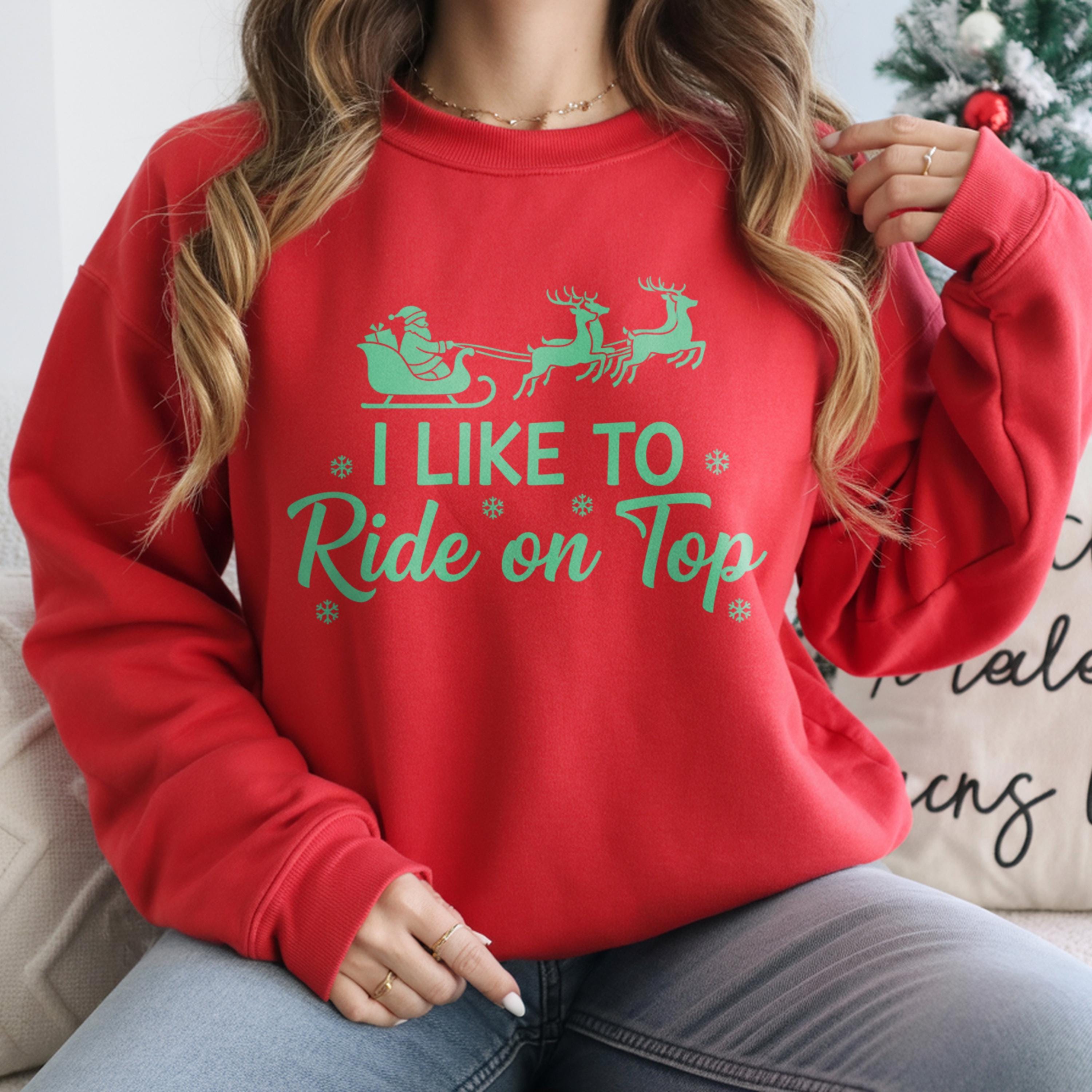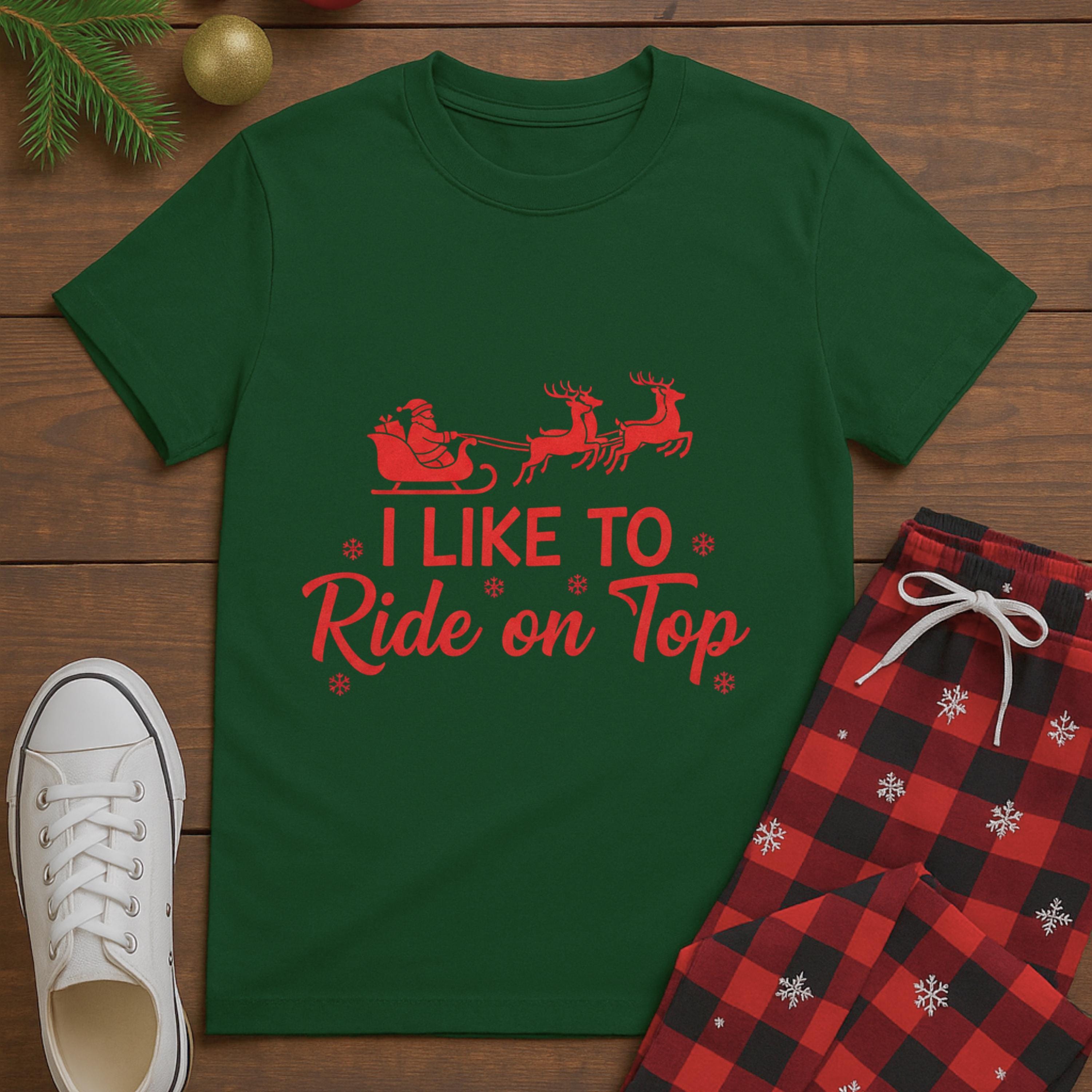 Funny Christmas Couple Shirts - Ride on Top Matching Tee, Raunchy Holiday Shirt, I Like to Slide Inside, Couple Pajamas