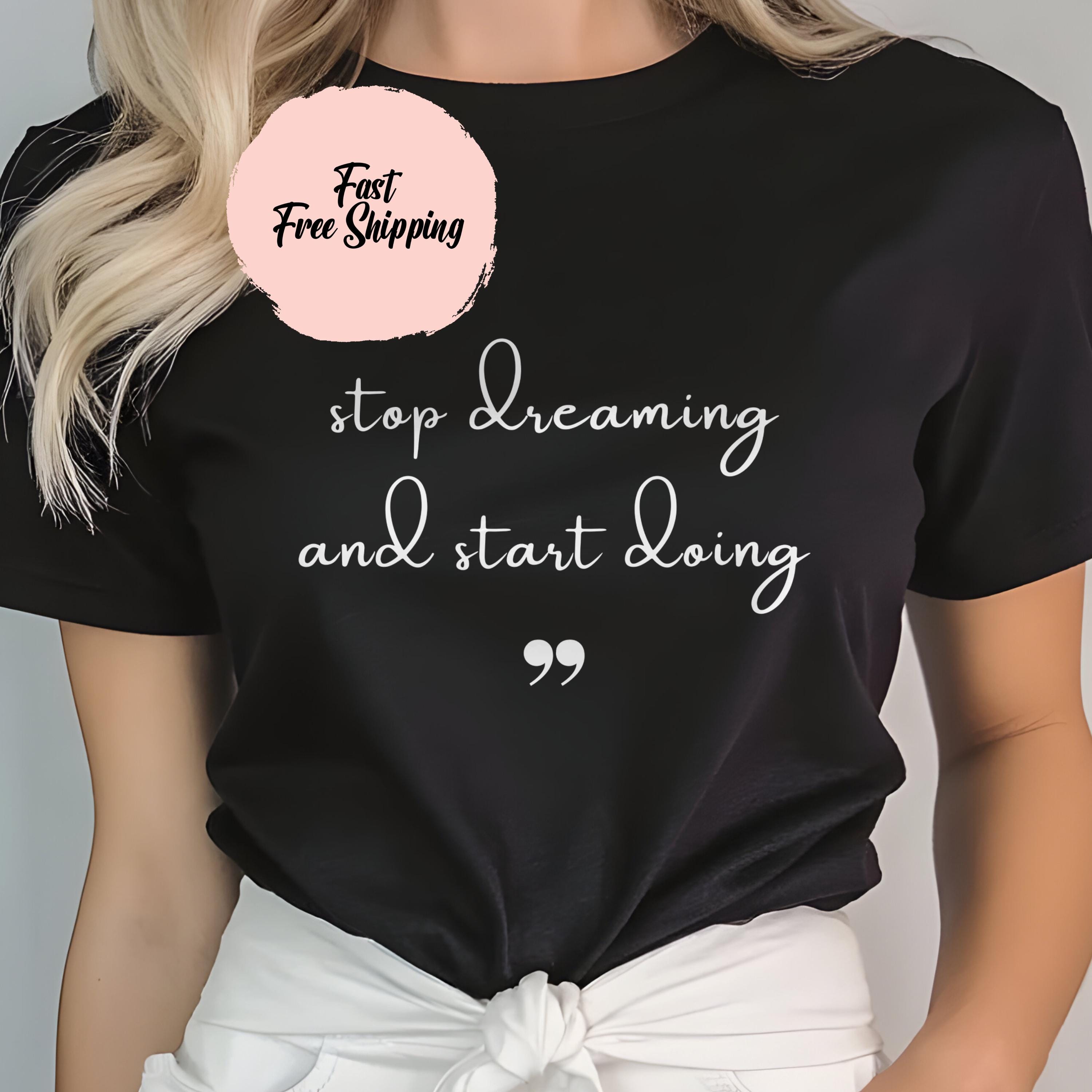 stop dreaming and start doing, motivational shirt, inspirational quote tee, positive mindset shirt, encouragement gift, uplifting graphic tee, hustle shirt, self improvement tee, inspirational sweatshirt, daily motivation tee, productivity shirt, positive quote hoodie, mindset