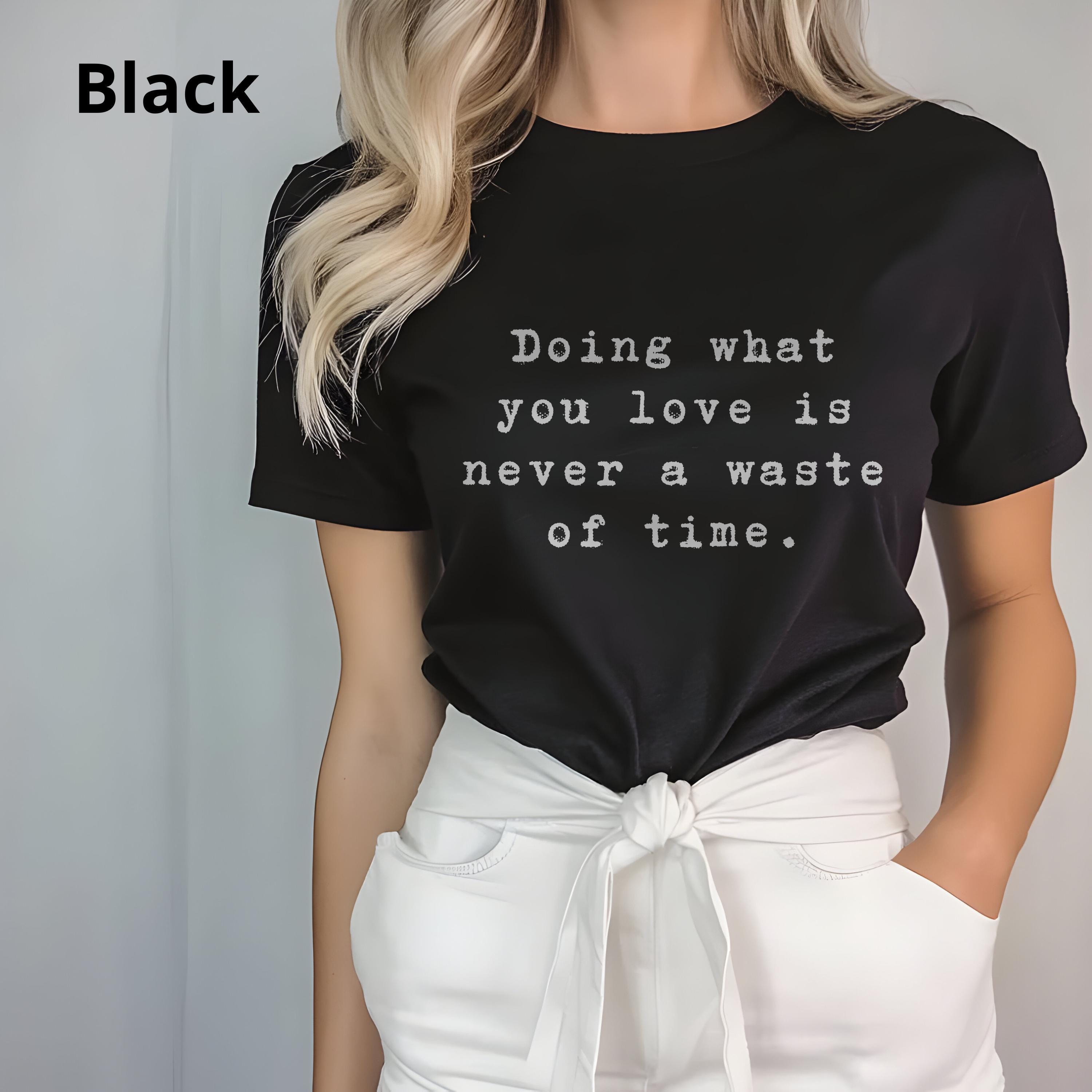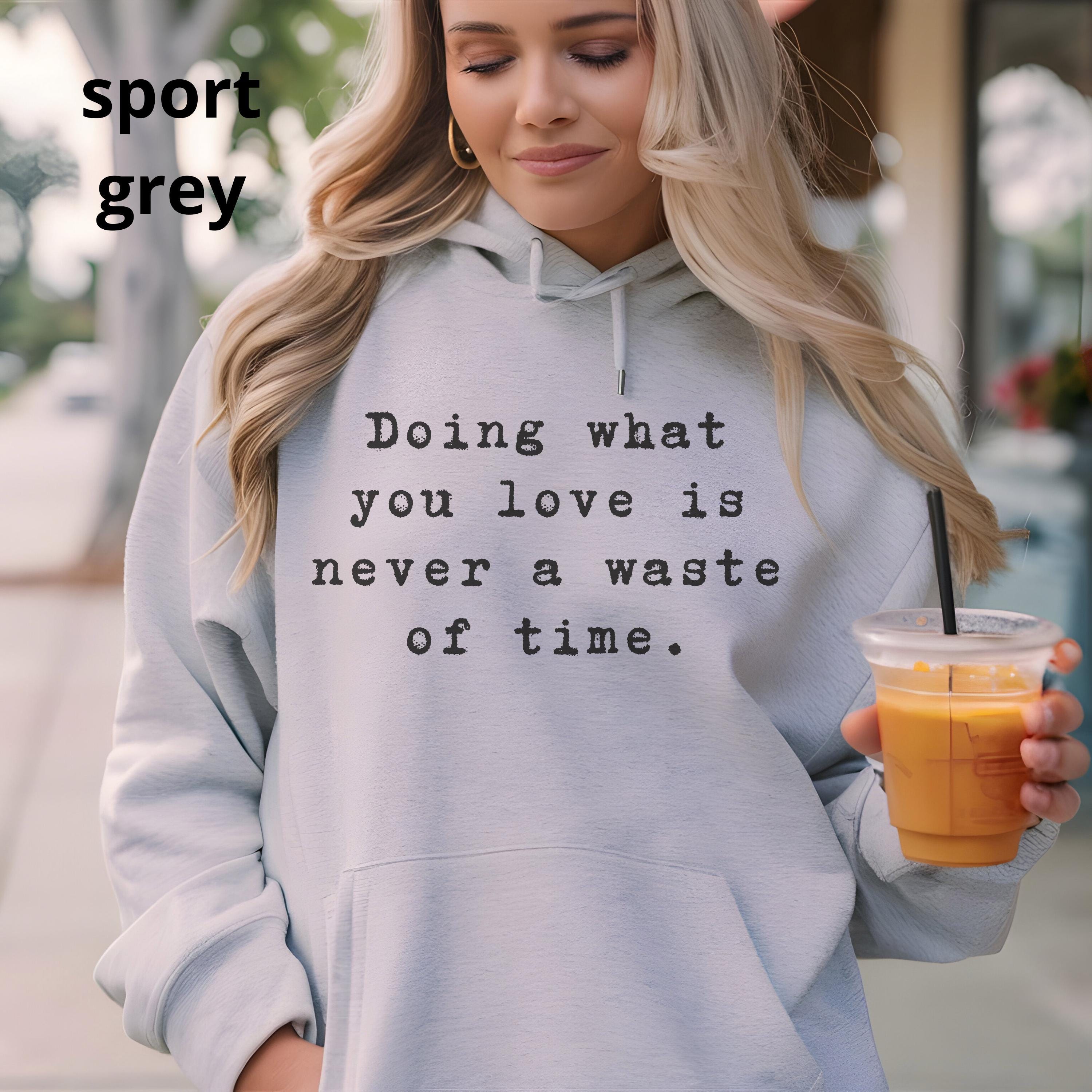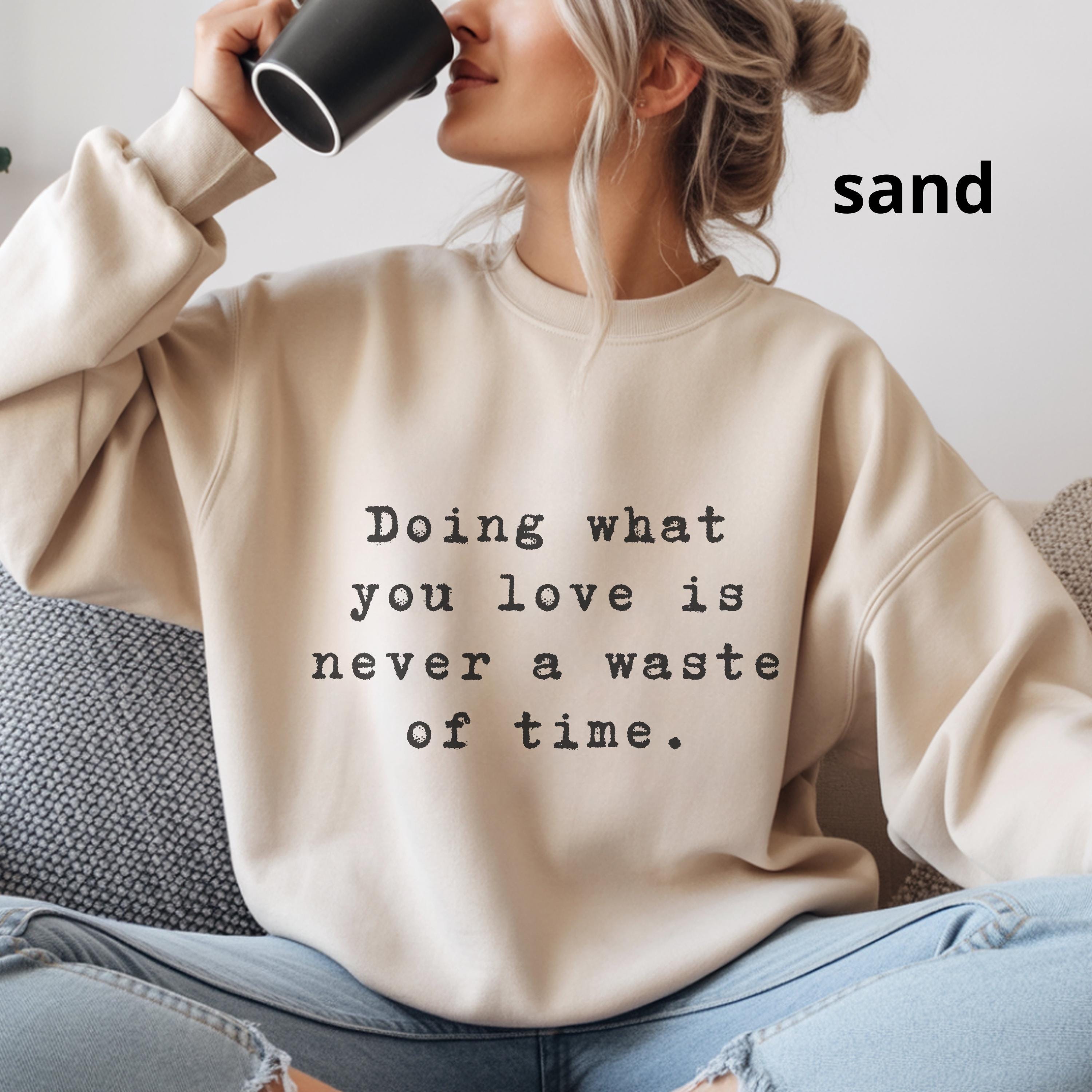 Inspirational Quote Shirt, Doing What You Love Is Never a Waste of Time Motivational Sweatshirt, Positive Mindset Graphic Tee