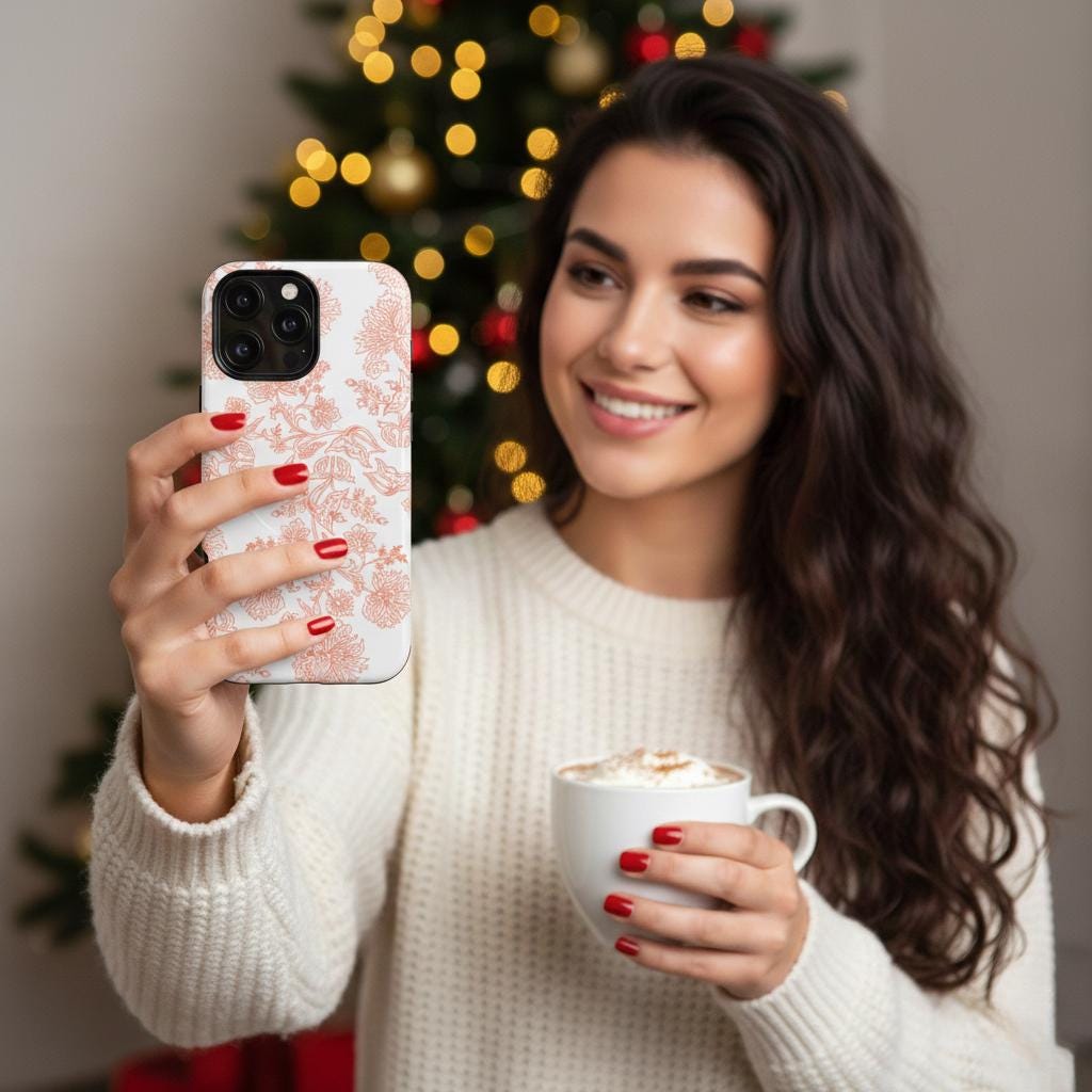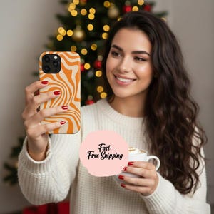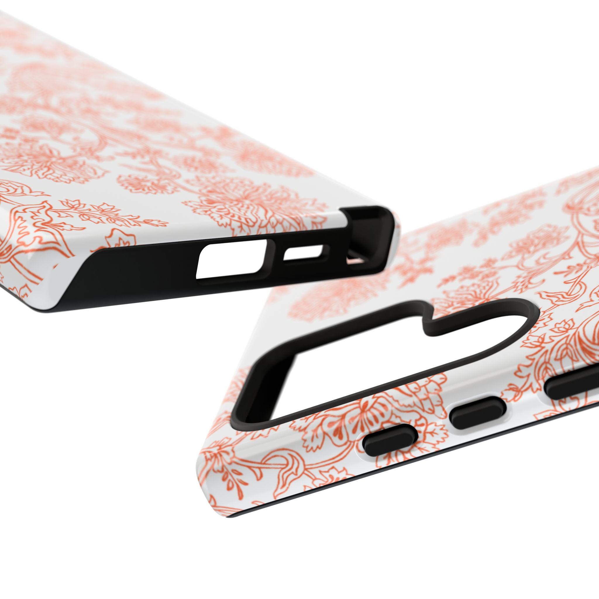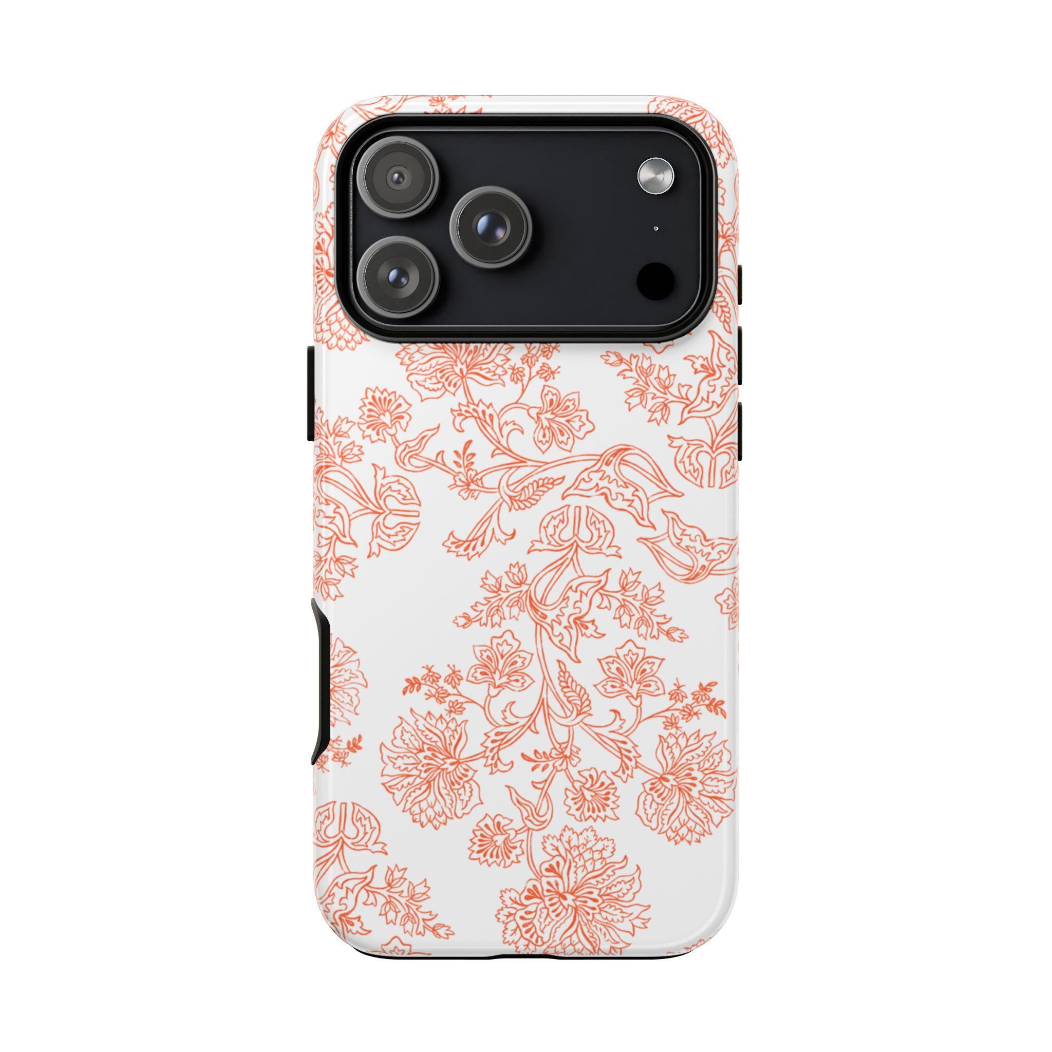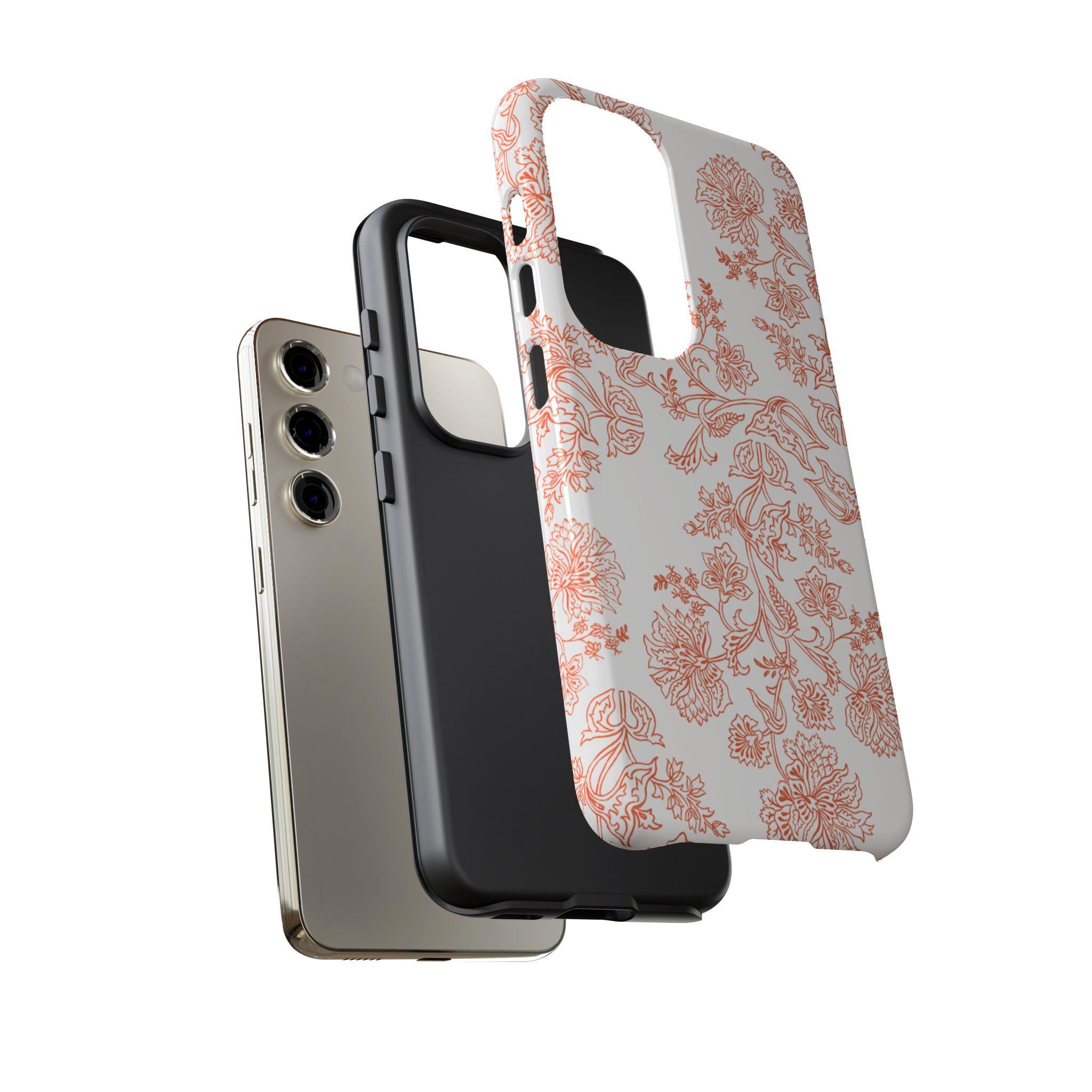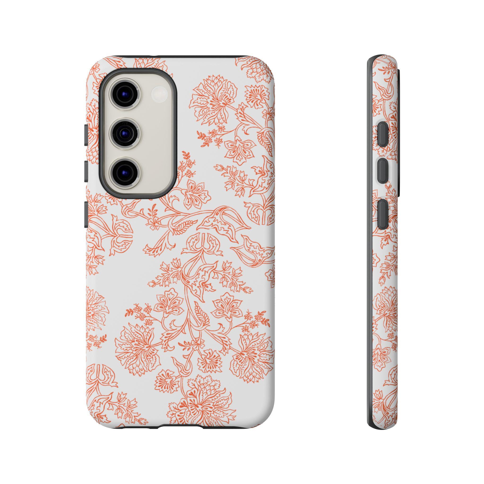 vintage floral case, orange flower phone case, botanical tough case, line art phone cover, aesthetic iphone case, samsung floral case, elegant phone case, minimal floral design, protective tough case, retro flower pattern, orange aesthetic case, botanical illustration case, cute phone accessory