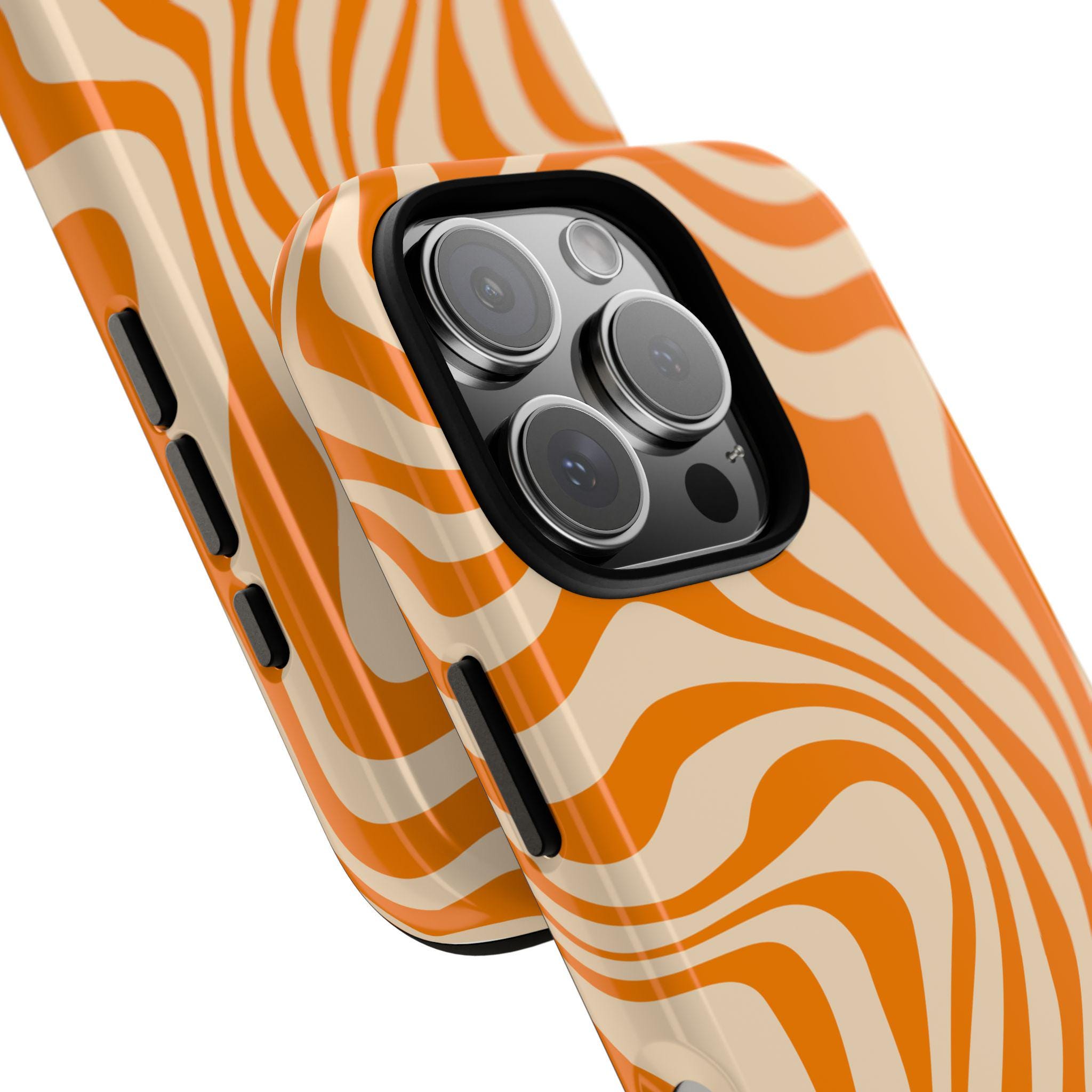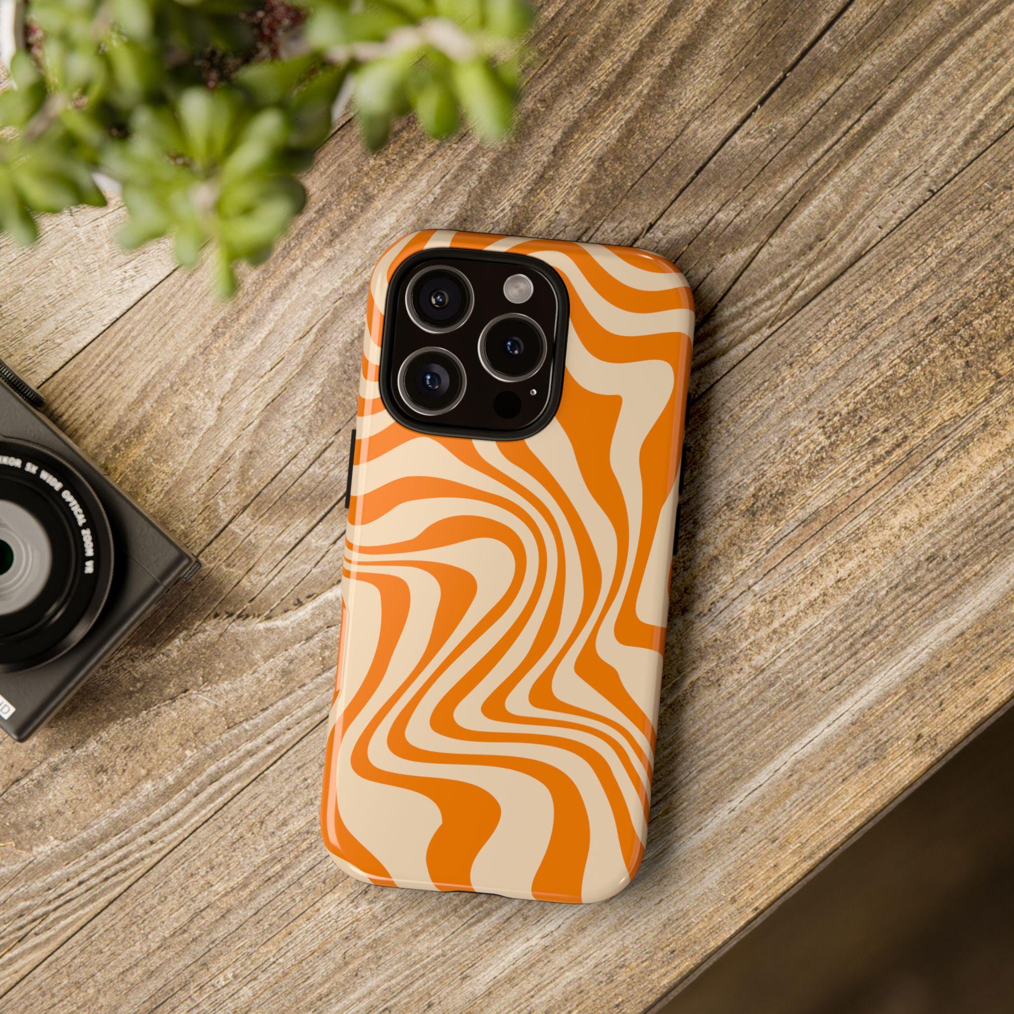 Retro Orange Wave Tough Phone Case, Groovy 70s Wavy Pattern Cover, Vintage Aesthetic iPhone & Samsung Case, Protective Trendy Gift