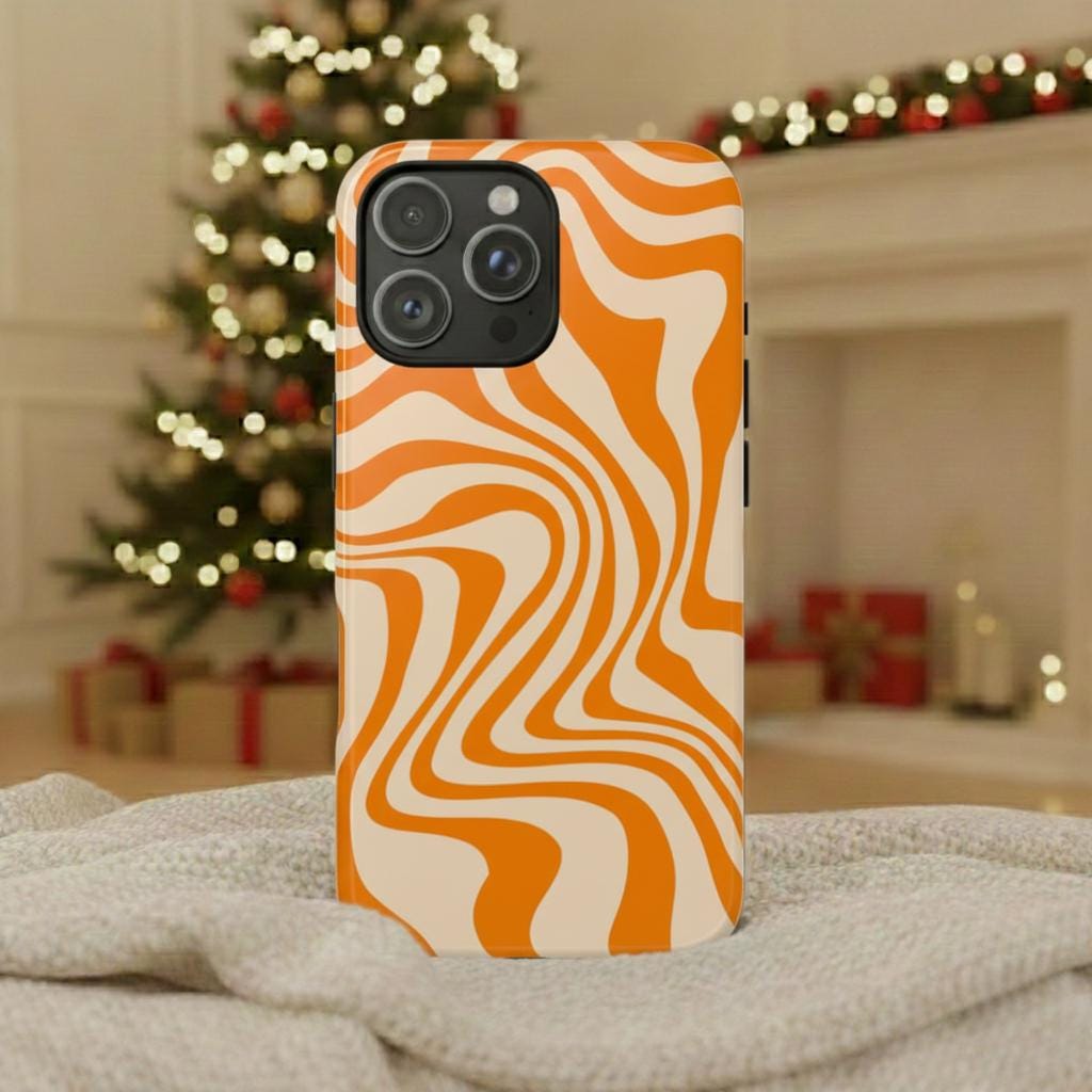Retro Orange Holiday Tough Phone Case, Festive Wavy Pattern Cover, Christmas Aesthetic iPhone & Samsung Case, Unique Holiday Gift