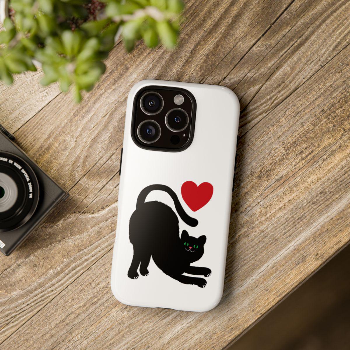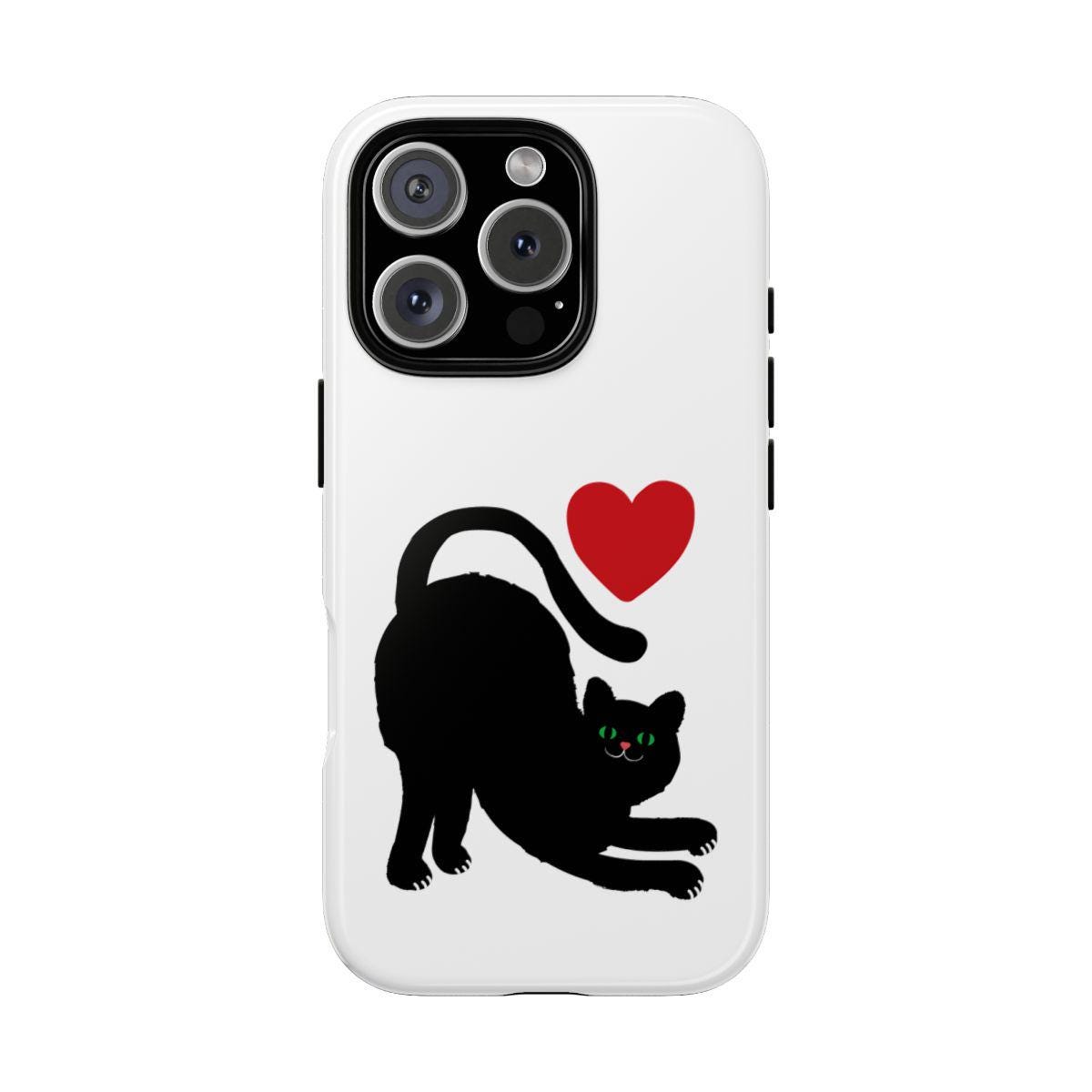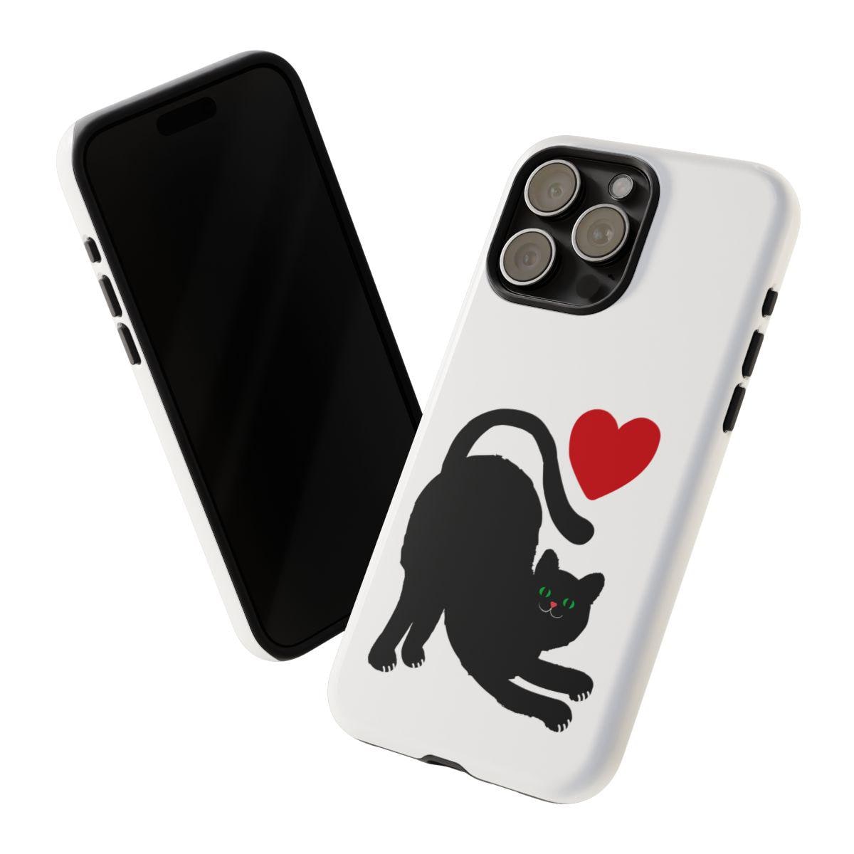 Black Cat Tough Phone Case, Cute Kitty with Red Heart Cover, Aesthetic Cat Lover iPhone & Samsung Case, Protective Pet Lover Gift