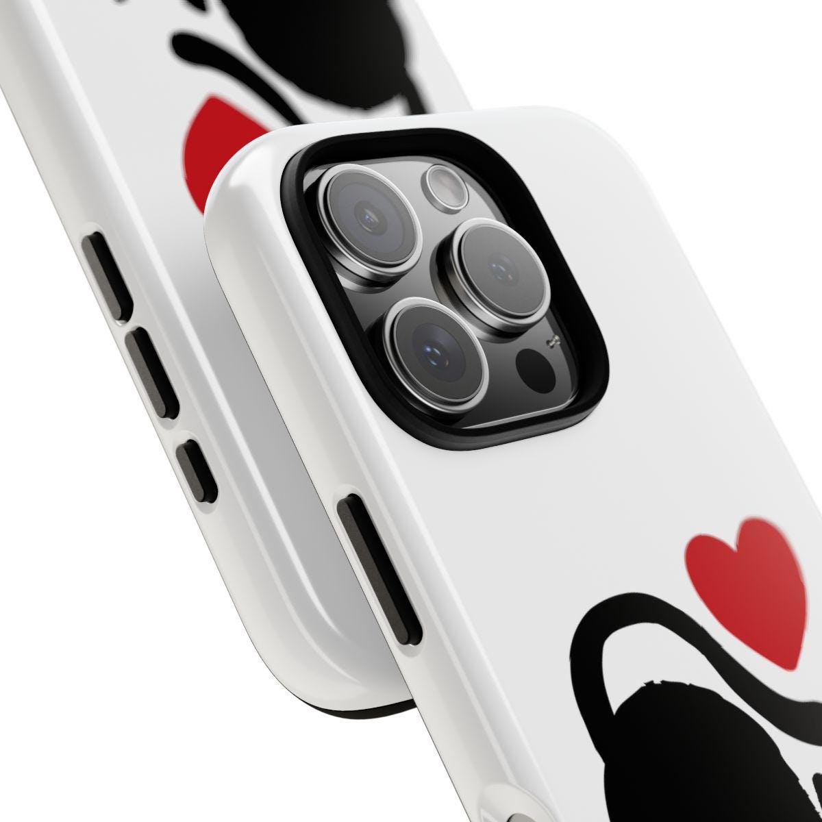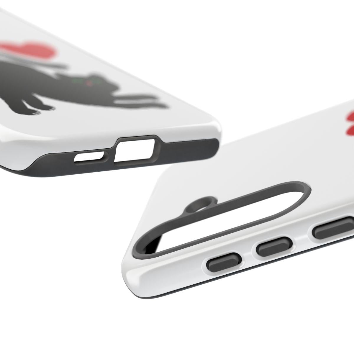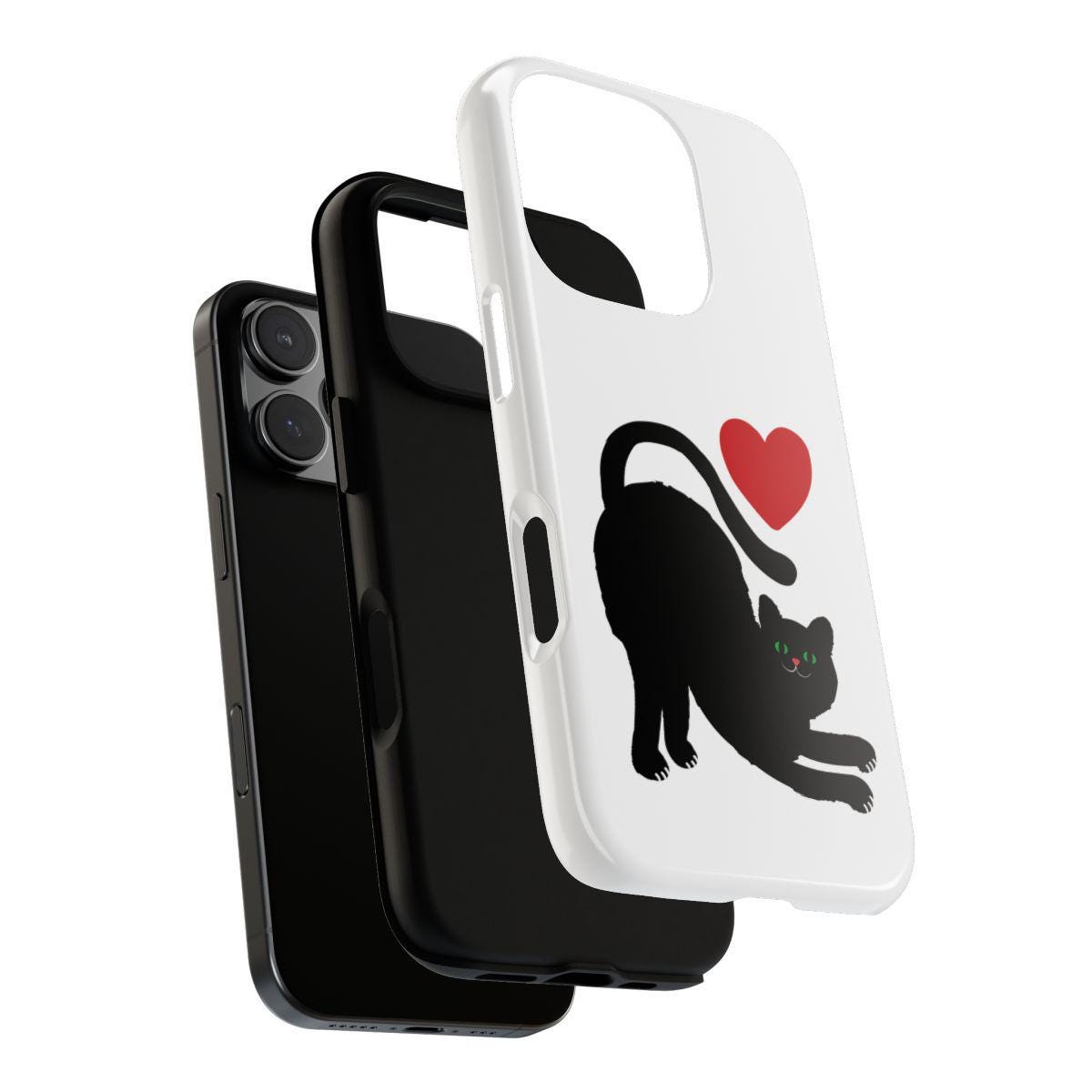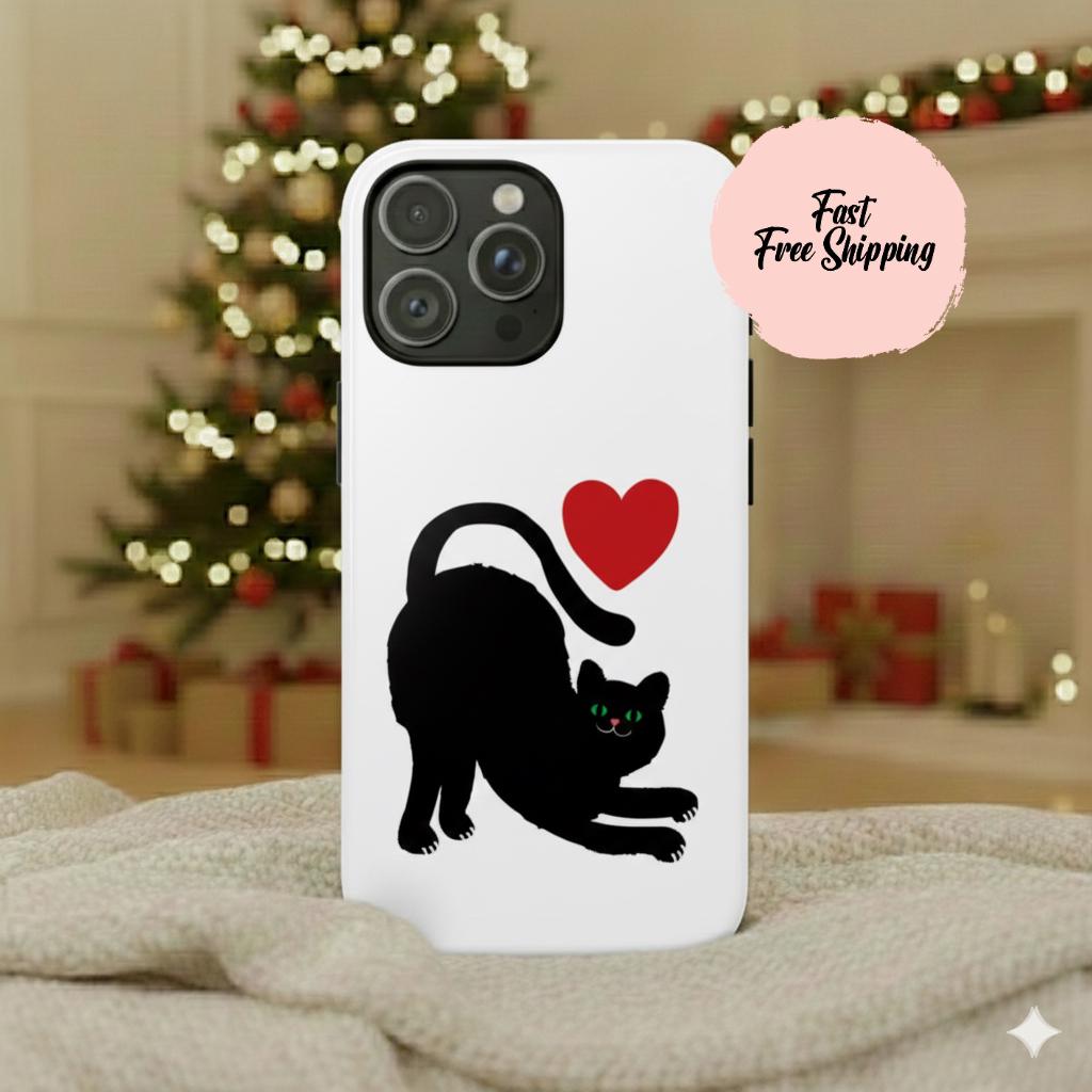 Black Cat Tough Phone Case, Cute Kitty with Red Heart Cover, Aesthetic Cat Lover iPhone & Samsung Case, Protective Pet Lover Gift