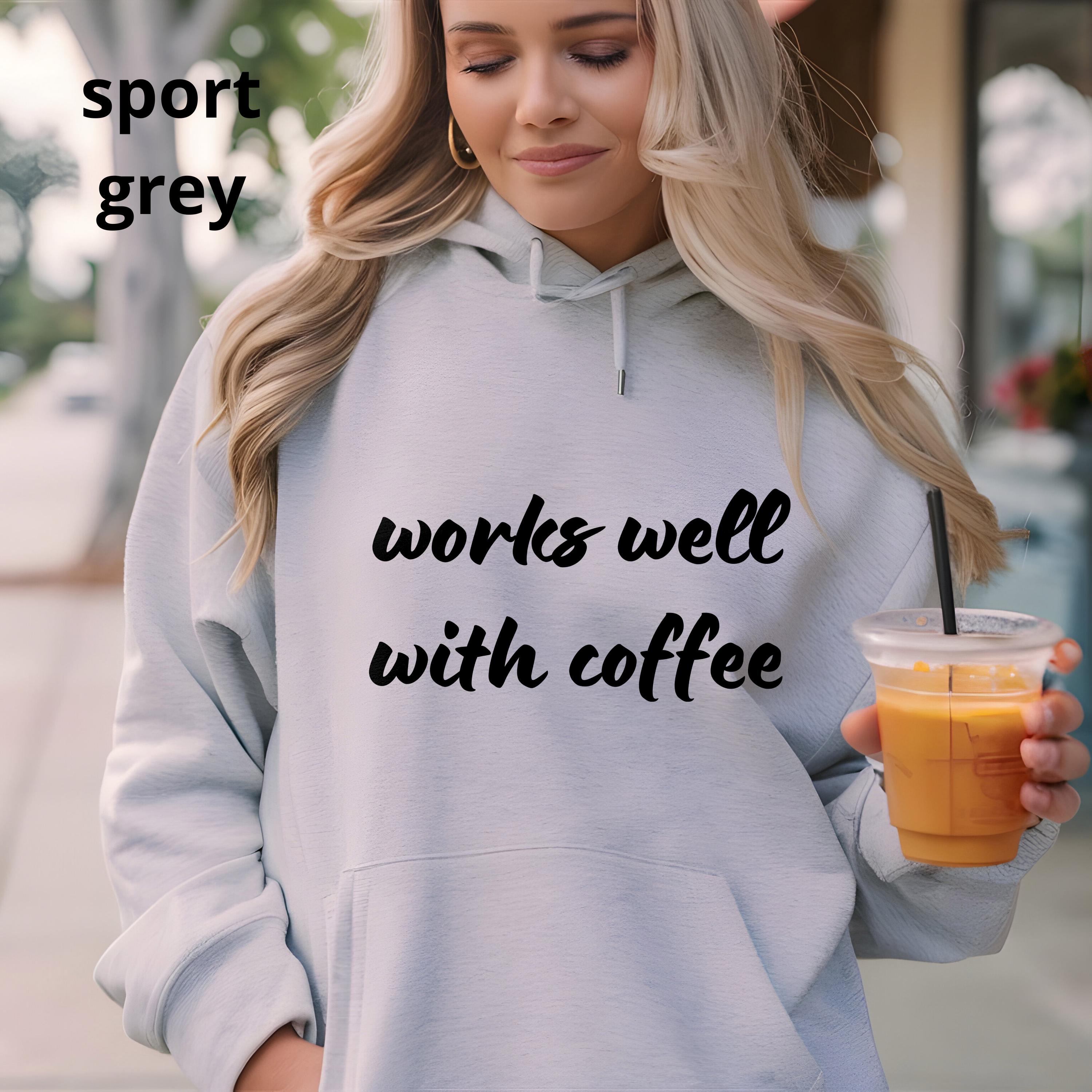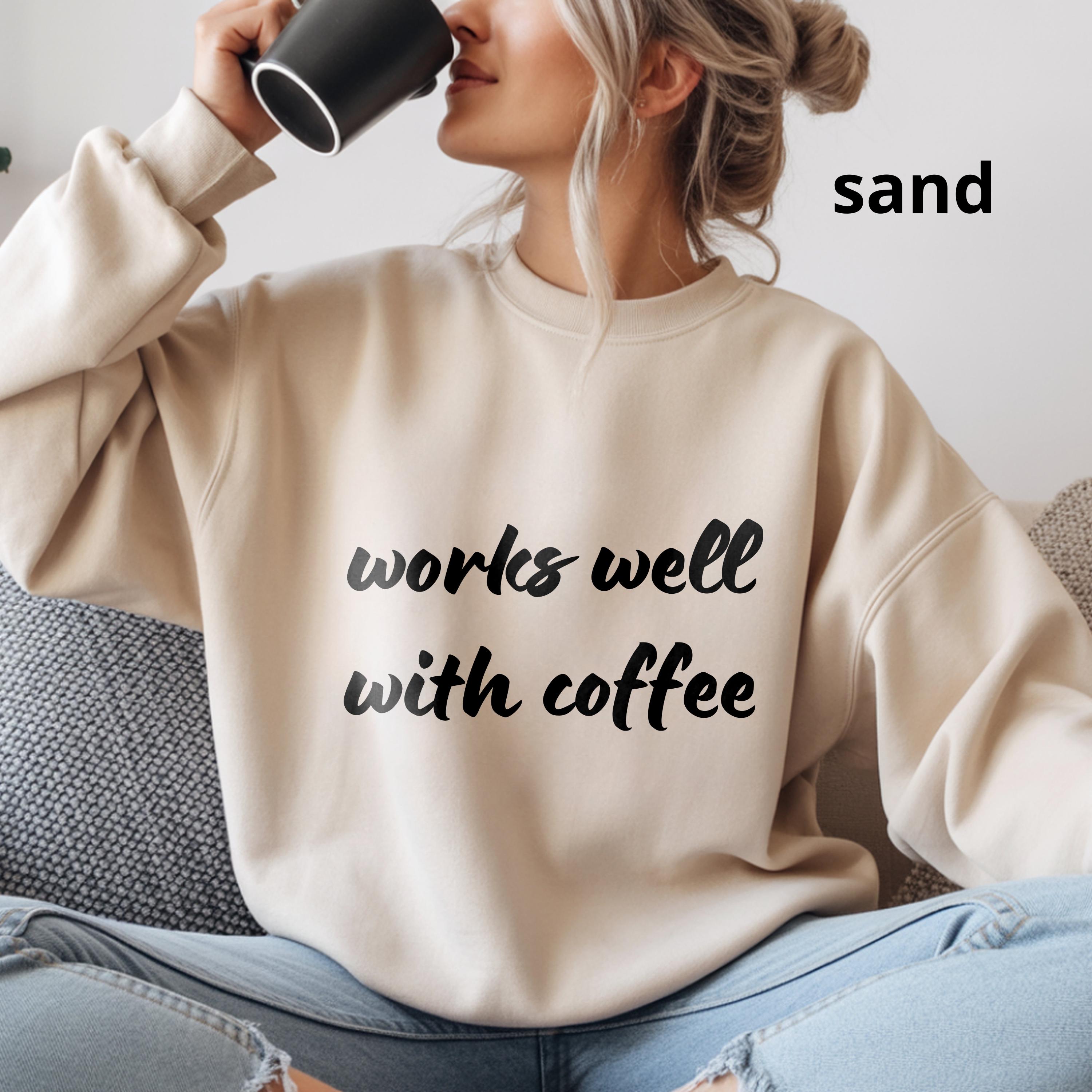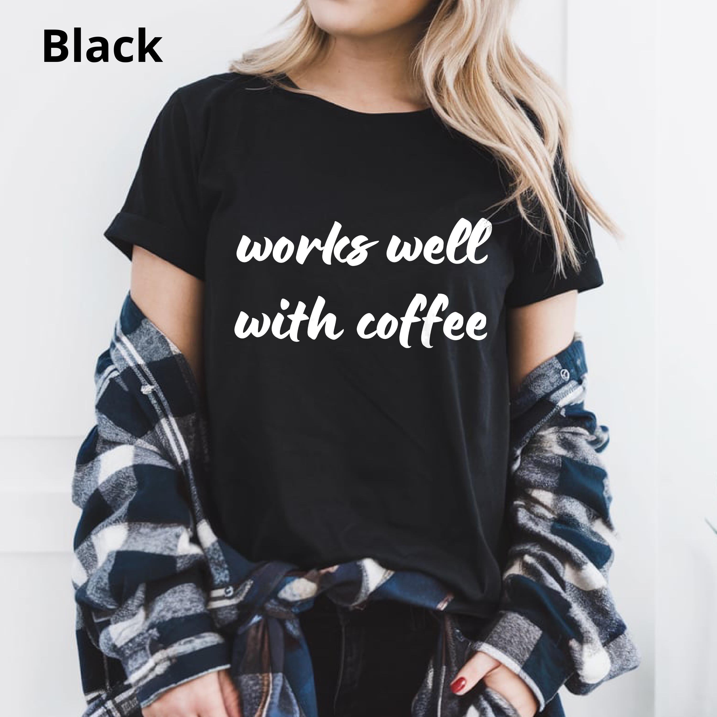 Works Well With Coffee T-Shirt, Funny Coffee Lover Tee, Caffeine Addict SweatShirt, Minimalist Black Graphic shirt, Cute Morning Coffee Gift